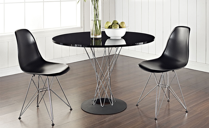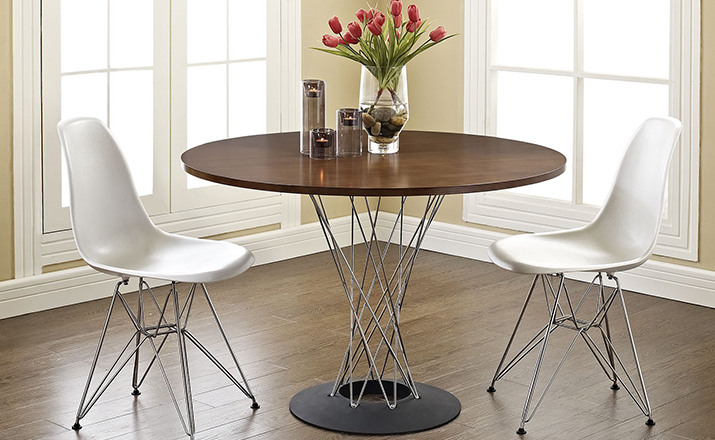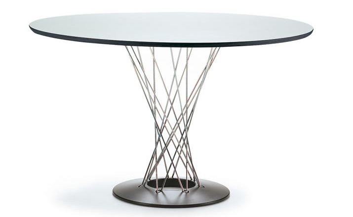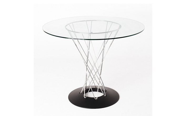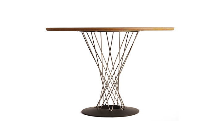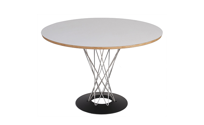 Cyclone Dining Table(旋风餐桌)由日本裔设计师Isamu Noguchi(野口勇)在1953年设计。野口勇非常擅长利用材料的天然特性,他的设计总让人感觉像是各类材料自然搭配在一起,而且不失完整。 野口勇餐桌(Sable Noguchi Dining Table)的桌面由15层的天然木皮压合而成,餐桌架是多根金属枝焊接而成,再配上沉重的铸铁底座,一件现代艺术家具就诞生了。这件标志性的设计被人称为“飓风”。