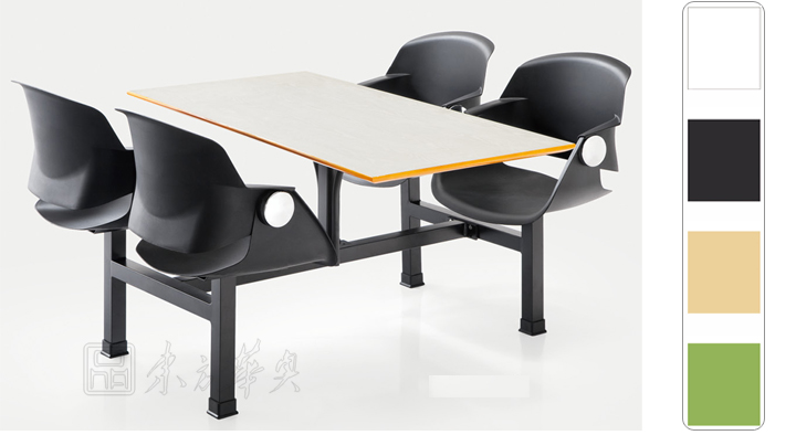 ※ 类似款桌椅连体展现,塑背款式独特,流畅的边线与内弧,美感与实用兼并;次系列的设计添加了很多的时尚元素,但是它却拥有简洁、明快的特质。这些就构成了此系列独特的快节奏的服务方式。