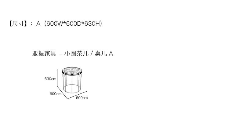 亚振家具 - 小圆茶几 产品尺寸/示意图