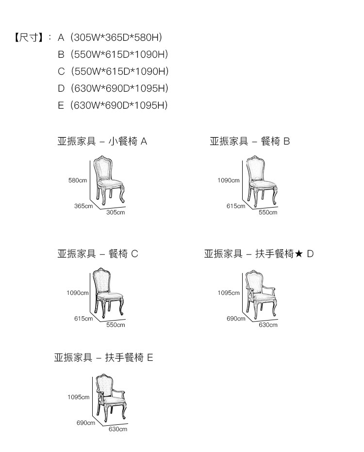 亚振家具 - 餐椅 产品尺寸/示意图