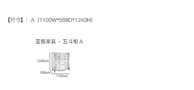 亚振家具 - 五斗柜 产品尺寸/示意图