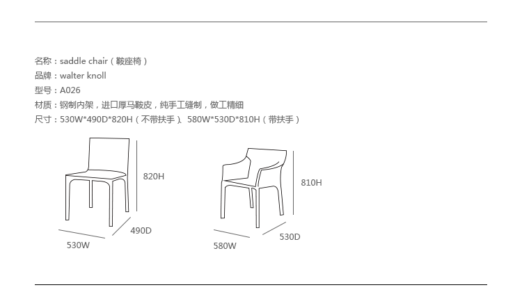 带扶手:580 w | 530 d | 810 h -