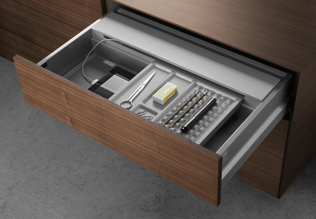 Exec_V是一款可调节高度的办公室系列,灵活的升降功能是这款产品的代表性功能。你既可以坐着也可以站着,完全符合人体工程学和对健康的追求。桌面看起来像是漂浮在底座和底座上,直线和角、宽和立方体的形状形成一种和谐的相互作用。电缆被包裹在升降底座上,作用于包括班台、副柜、会议桌等等。Exec_V是一款具有代表性和使用性的优秀升降班台.