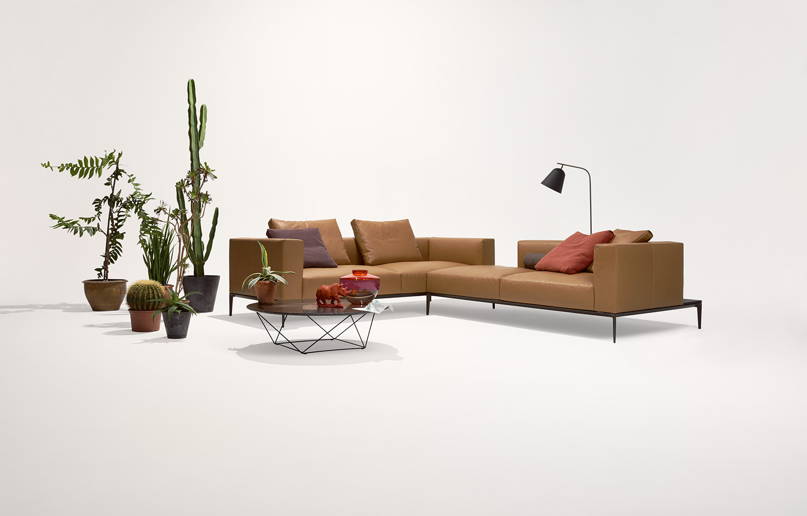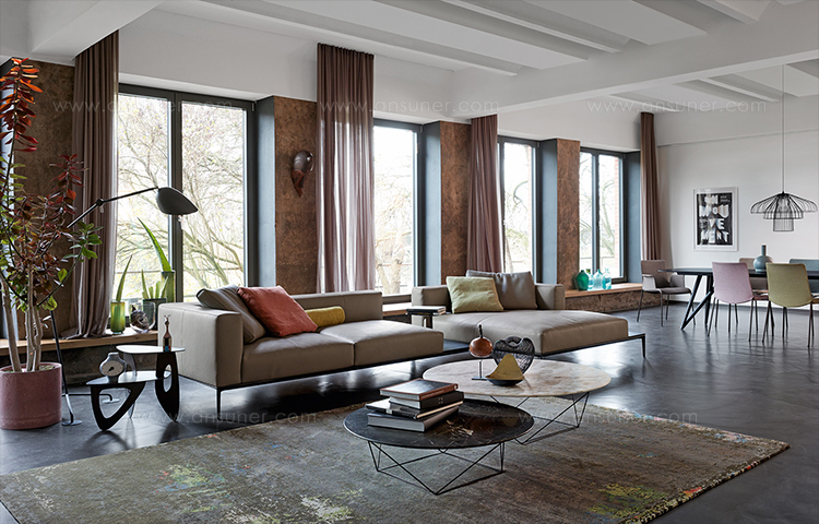 现代世界性的优雅生活方式。沙发的柔软可以使你舒适的陷在沙发里,满足了你对沙发安逸的想象。精致的框架在黑色的哑光漆作用下显得格外清秀。同时,为Jaan Living的宽敞的软垫搭配也做好了准备舞台。别致的,诱人的,与此同时,皮革的随意外观,与室内的灯光填充相得益彰。玻璃板或马鞍皮革的木板,对于日常小憩或者闲暇的阅读提供了非常方便的场所。Jaan的整体结构也提供了更大的座位空间,最吸引人的地方在于,两种结构都可以很从容的组合起来。对于新的几何图形和场所,适合于个人偏好和摆设吗。很自然的优雅。