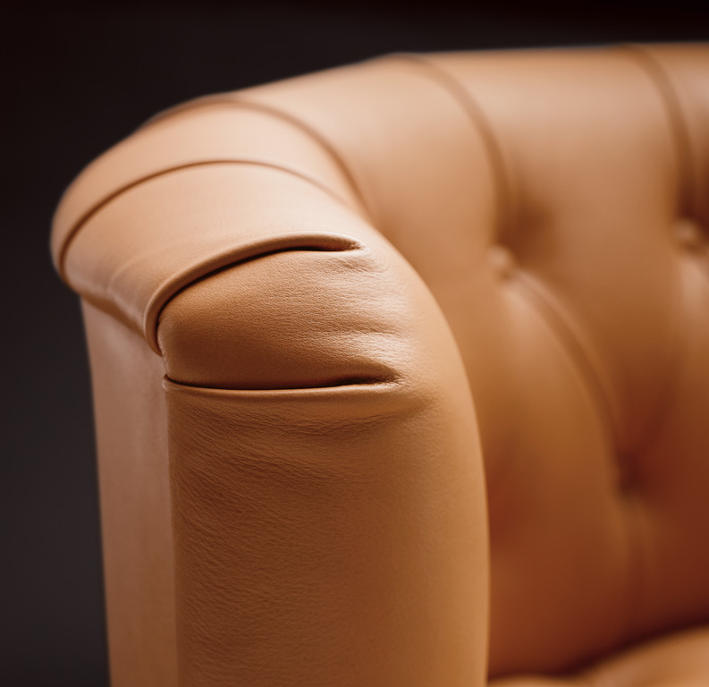 作为瑞士设计行收藏的一部分,Walter Knoll重新发行这款于1962年设计的经典的历史家具。与所有的切斯特菲尔德家具一样,独特的菱形图案结构的靠背和座位。传统的纽扣装饰服饰技术确保了这一点。一种巧妙地装饰体验标志。这是对包豪斯运动的致敬,反映在它精致的腿上。
