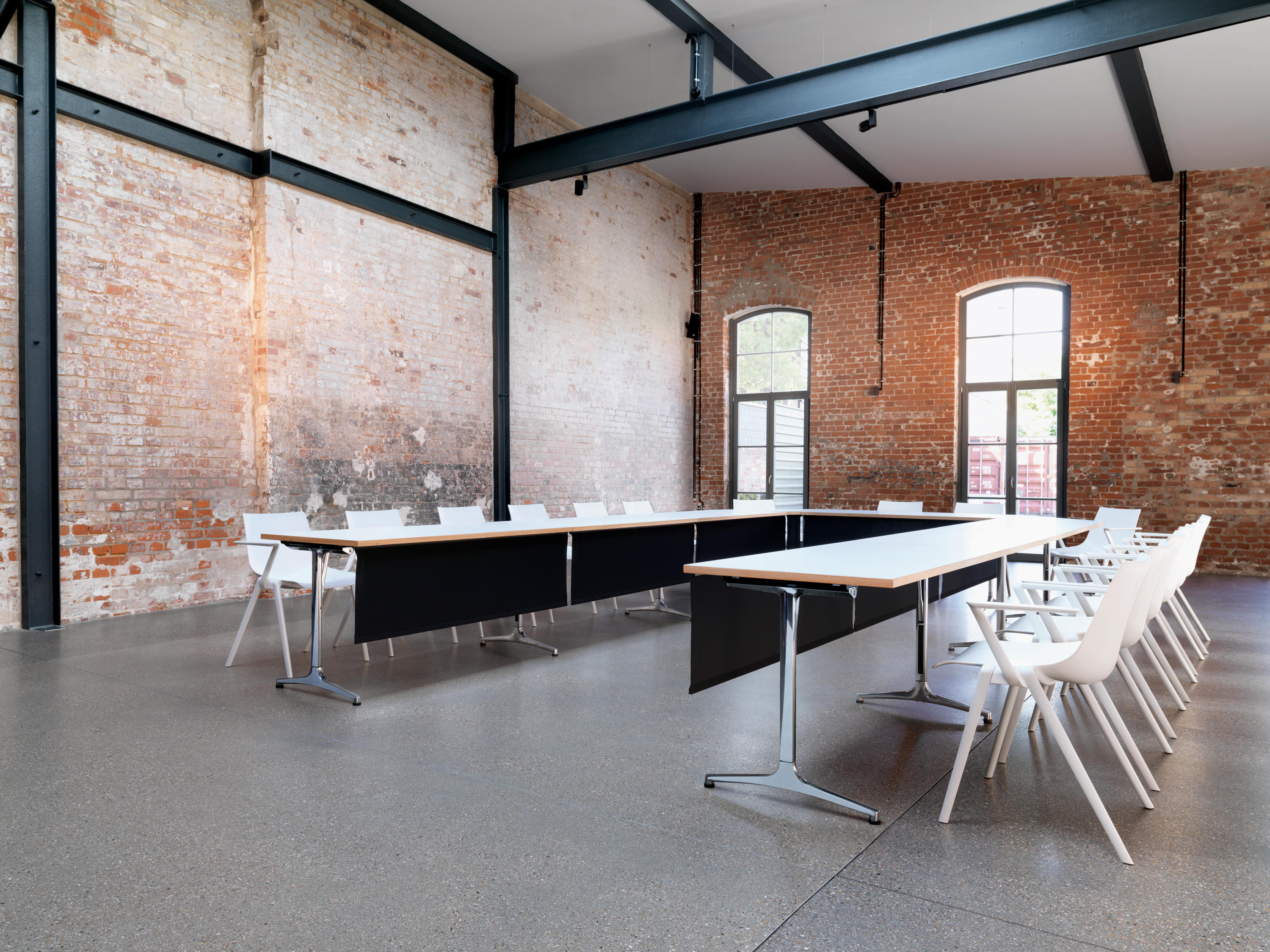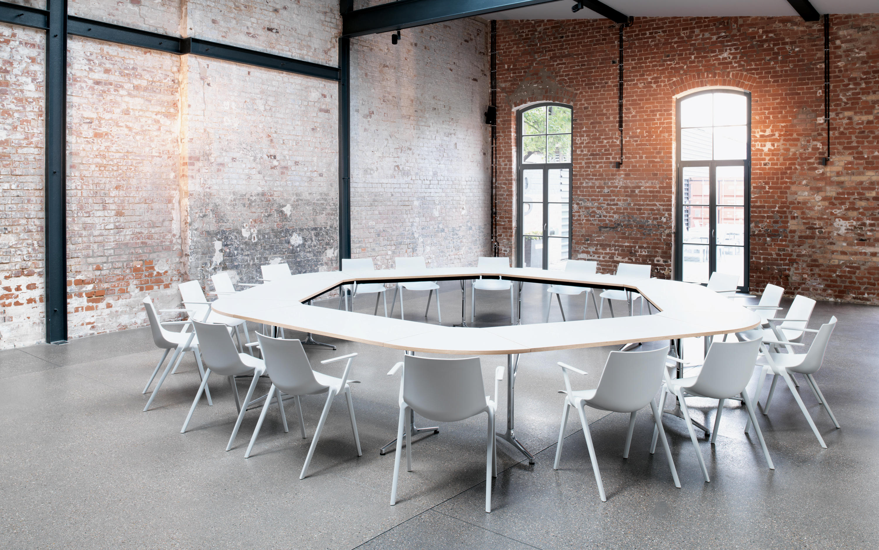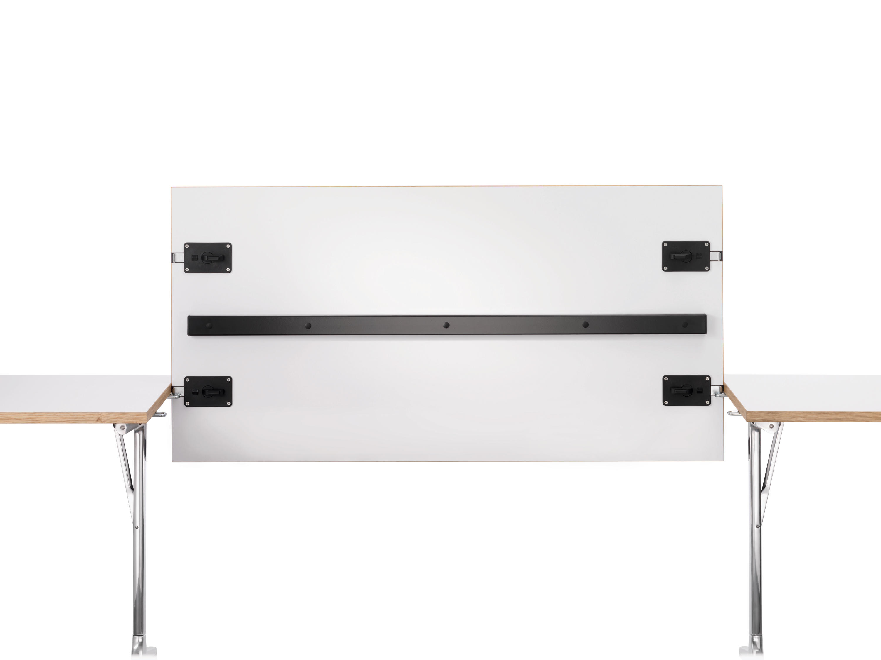 折叠桌的设计是为了给储存空间提供灵活的解决方案。在处理储存方面上,其设计的品种和质量对设备管理成本的影响受到了用户的赞赏。这就是mAx迷人的地方。设计精巧的折叠桌可以被紧凑的堆放,而且只需要一只手就能进行折叠。时尚的T型脚的材料和工艺保证了桌子的坚固耐用。