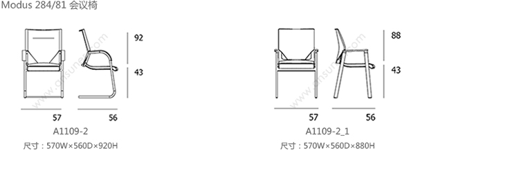 Modus 会议椅 系列尺寸/示意图