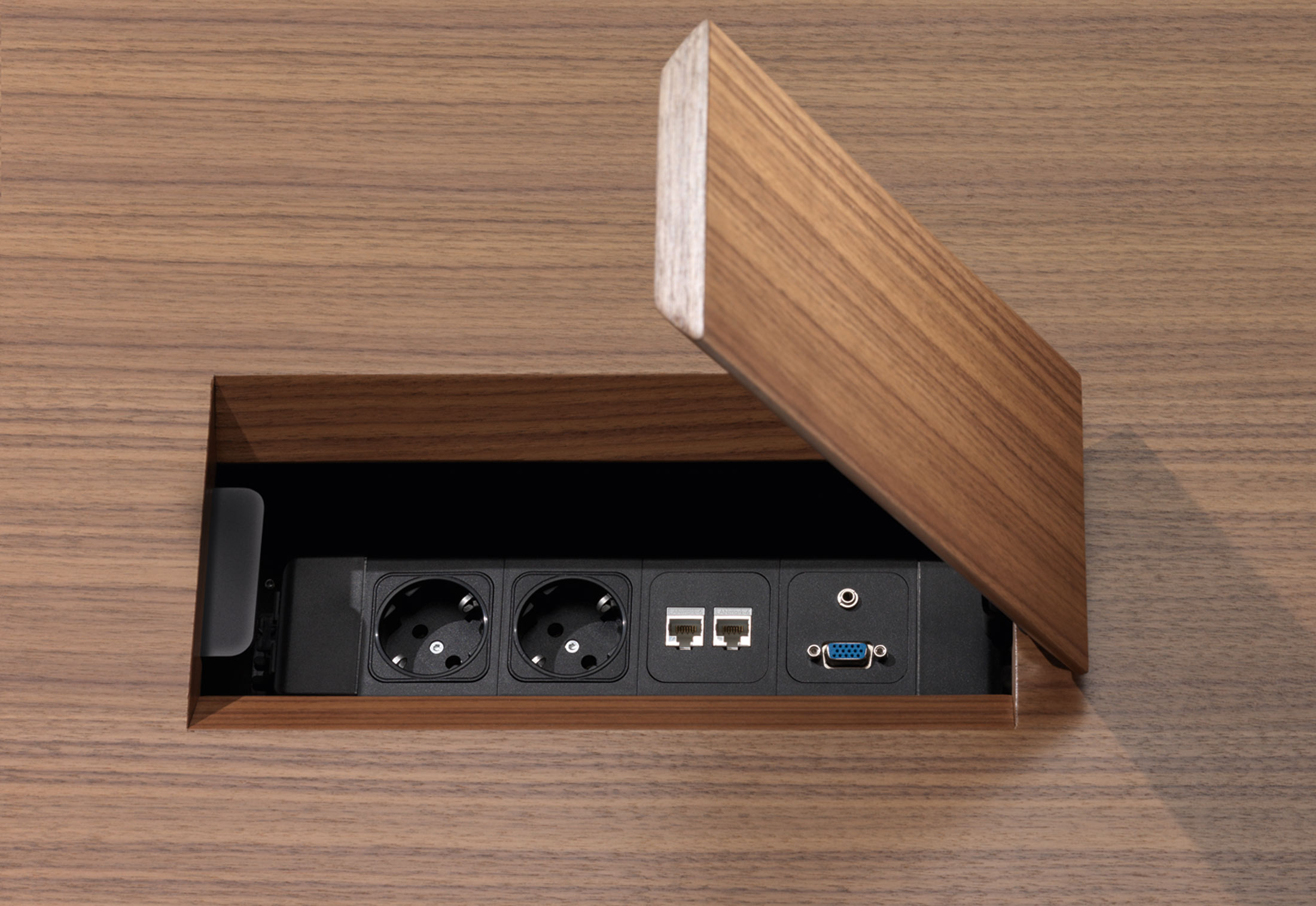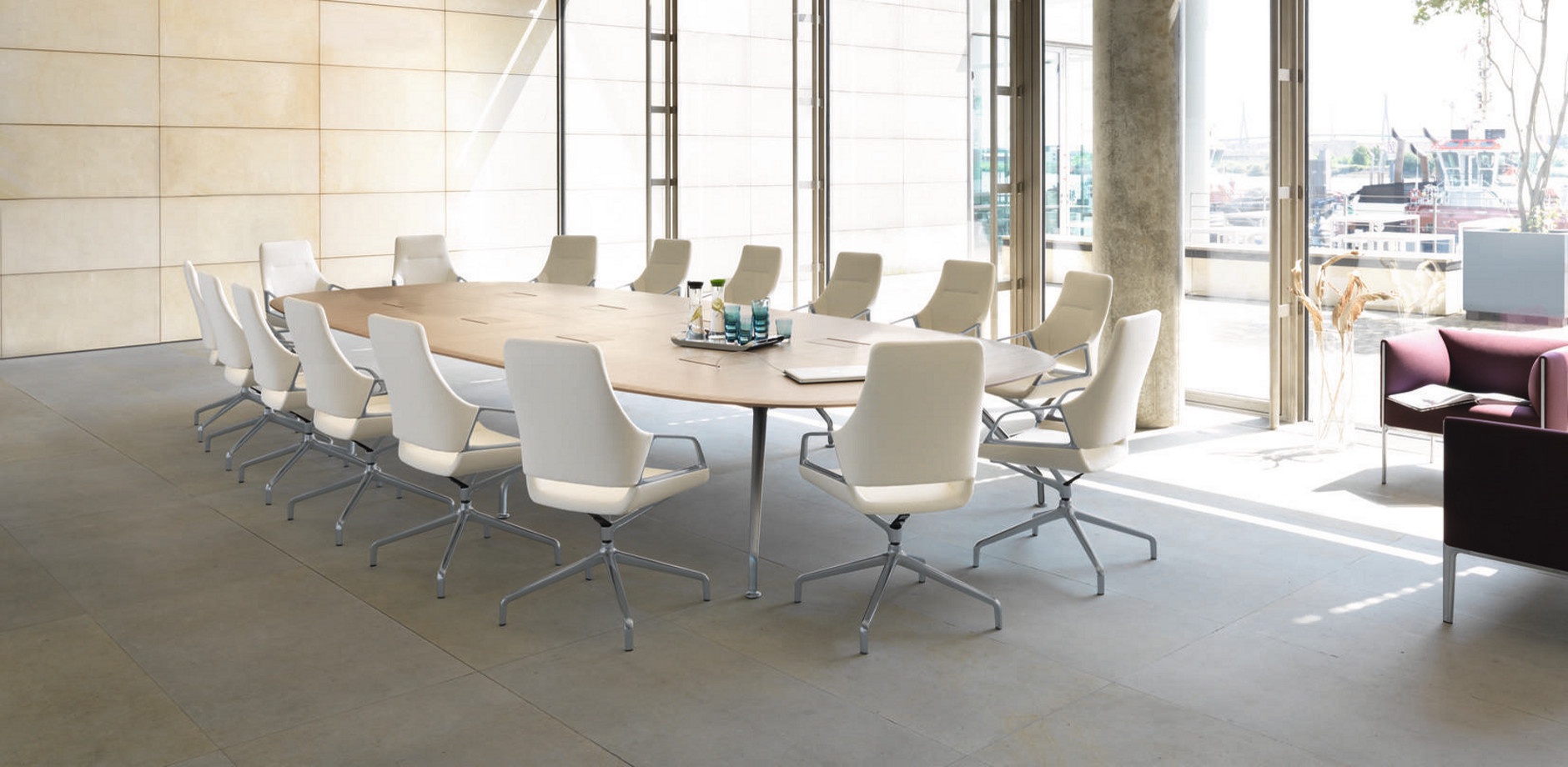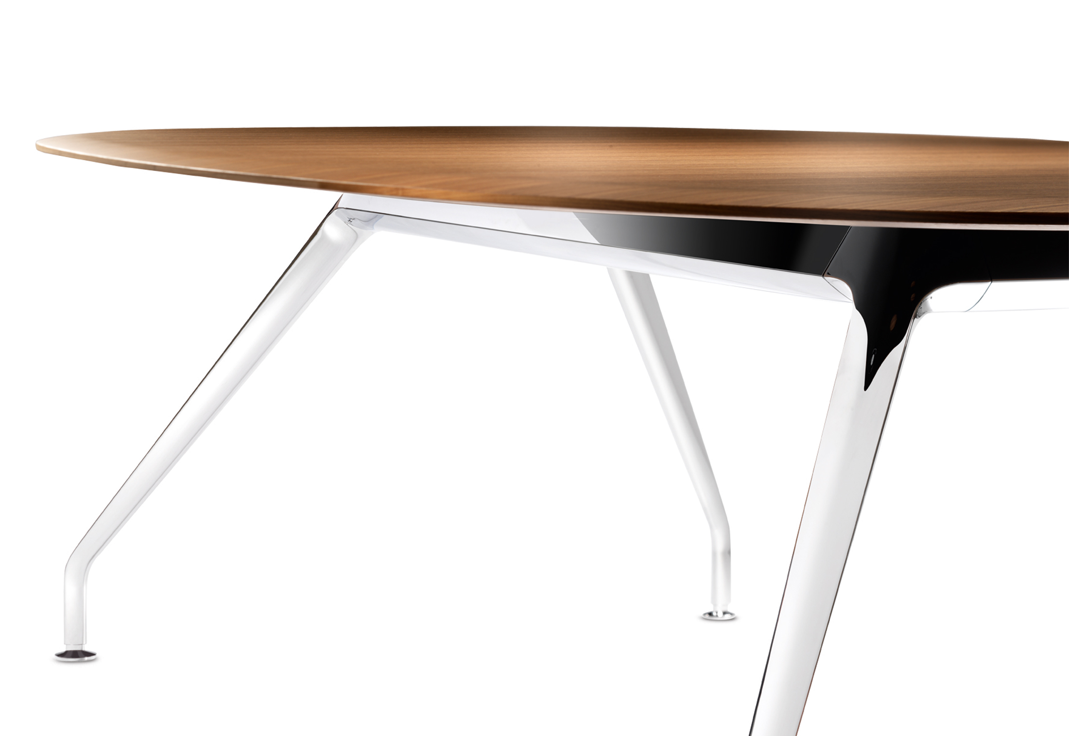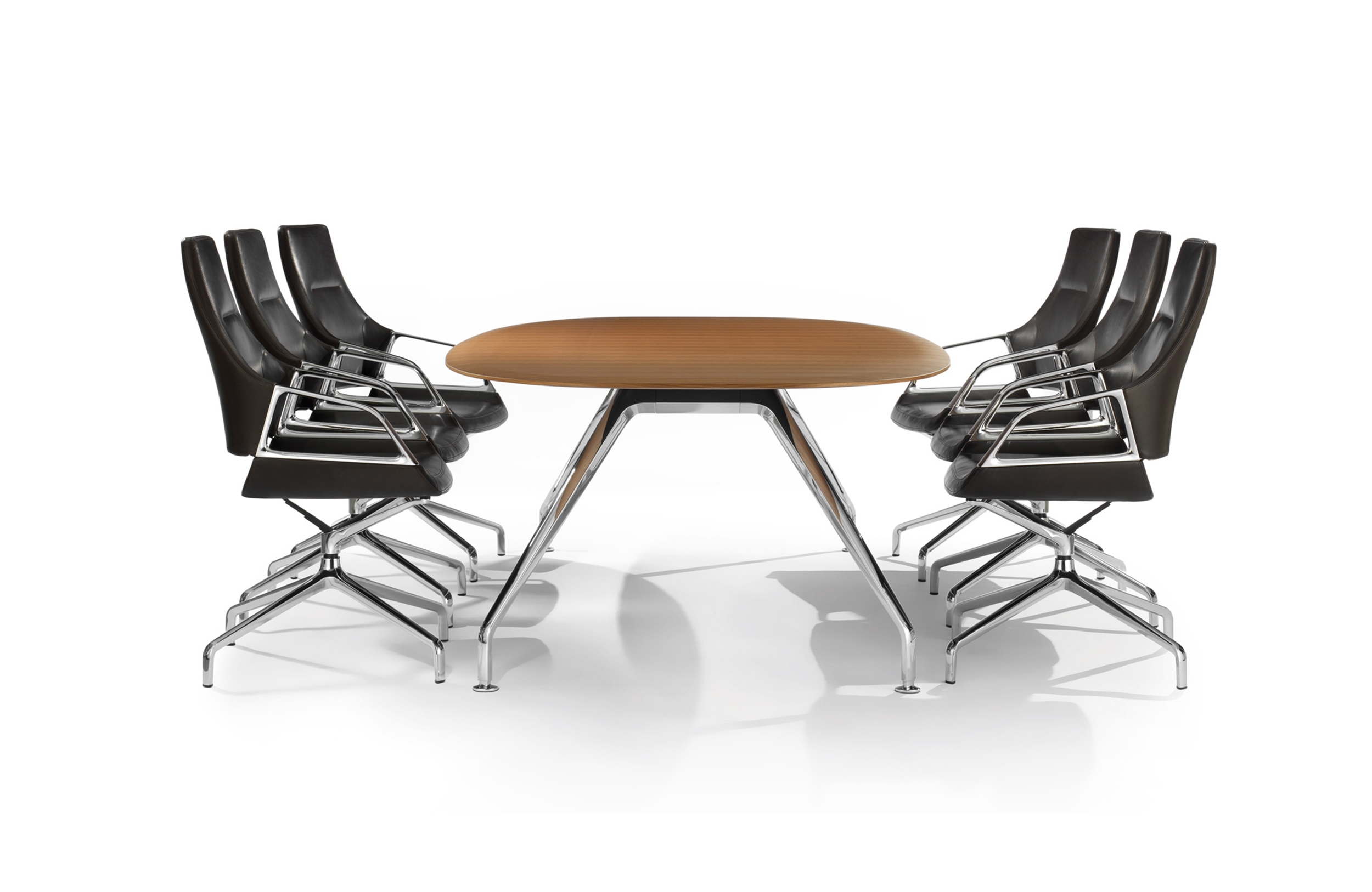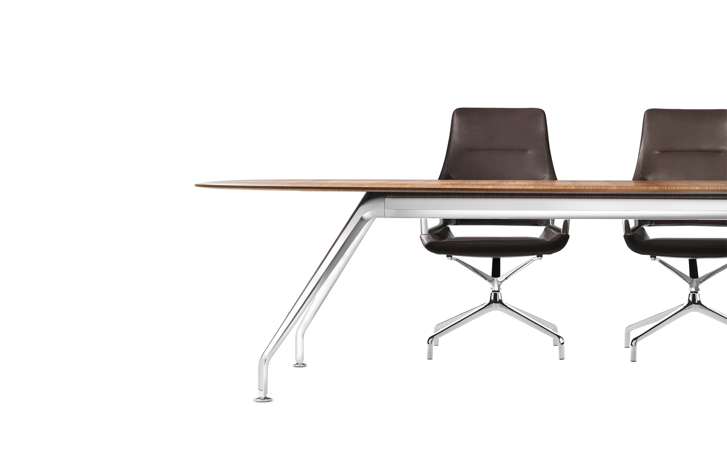 他的Graph反映了图表会议椅的主要设计特点。椅子的足部、扶手都可以在Graph会议桌上无缝反映出来。在桌子的框架上,铝的框架与倾斜的压铸铝腿和它们弯曲和扁平的外观相呼应。因此,在工作台框架上,灯线始终如一地出现,从而使框架具有无缝外观。巨大的跨度也给人留下了一种优雅的印象,引力似乎在那里几乎停滞了。这个ef fect是由不对称曲线的表边和表的圆角来增强的。