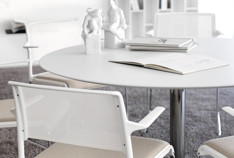 除了skid和转角座椅、工作台和酒吧凳子外,还提供了圆形和方形的矮桌、高台和高台座的桌子,以及双座的长方形桌子。对于专业用途的非正式区域来说,它的时尚和透明的外观和感觉是很理想的:销售室、顾客支持和等候区、小酒馆和自助餐厅,或者是在家里的桌子和餐厅。由于座椅的抗菌织物和容易护理的、结实的桌面,对水疗和保健领域来说是极好的选择。不管布置的是什么,家具都能给房间提供一种轻松的,轻松的吸引人的方式来促进非正式的谈话。它既具有吸引力又很舒适,同时具有复杂的功能。