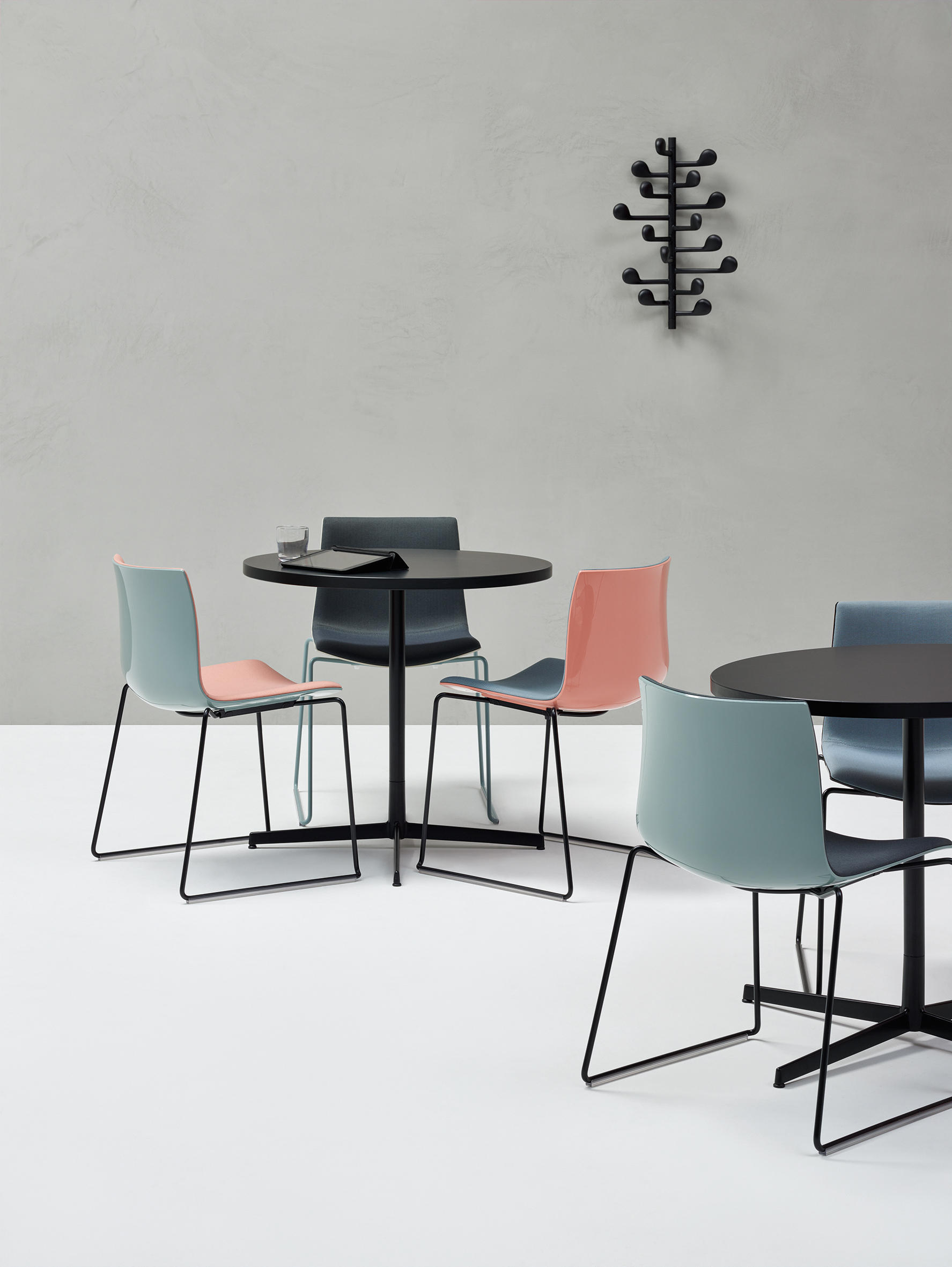 Catifa 46是Catifa 53的小妹妹。同样光滑的外形,清爽,休闲的效率,专为合同使用而设计,需要稍微缩小的空间。极其灵活,Catifa 46扩展了饰面,底座和配件的调色板,以便定制,以适应几乎无限的合同应用程序,而不会改变其基本特征。
