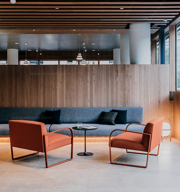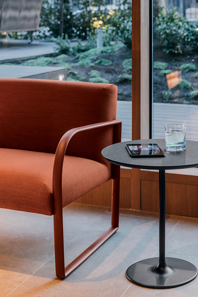 Arcos有四种座椅配置可供选择:椅子,休闲椅,双座或三人沙发。每个都是由橇底和由抛光或粉末涂层铝制成的集成扶手创建。外壳可以采用多种材料饰面进行装饰,配有粉末涂层扶手。由于有四种座椅选择,Arcos系列可以组合或重复使用,为酒店,住宅和合同使用创造许多不同的座位环境。