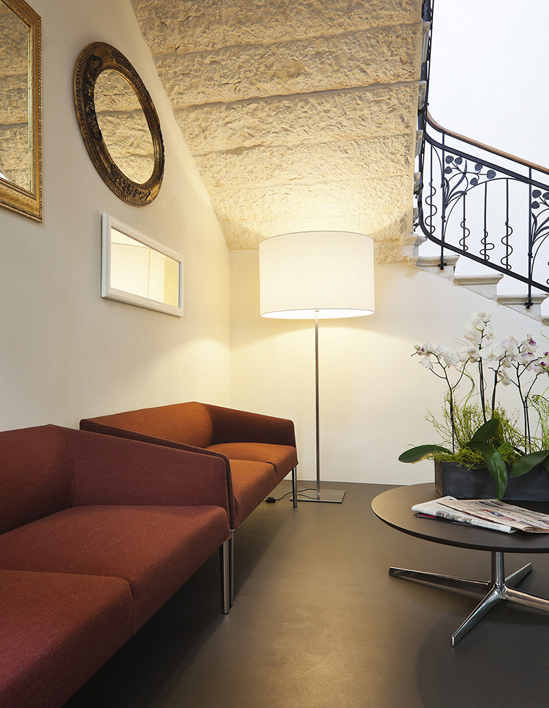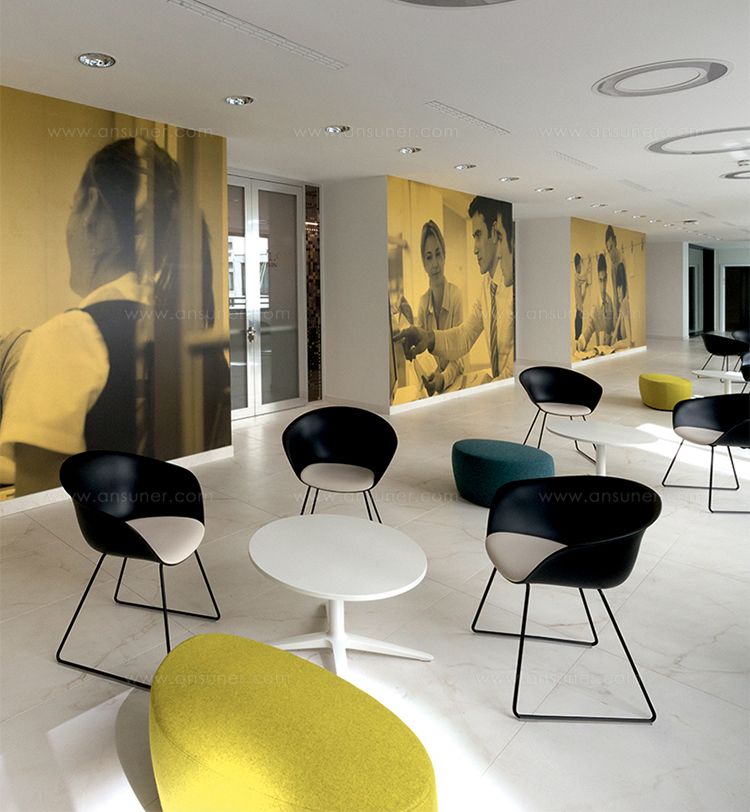 咖啡桌粉末涂层铝4路基座和椭圆形或圆形顶部白色压花MDF(厚2.5厘米)或层压板FenixⓇ(厚2,6厘米)。高度:35厘米。