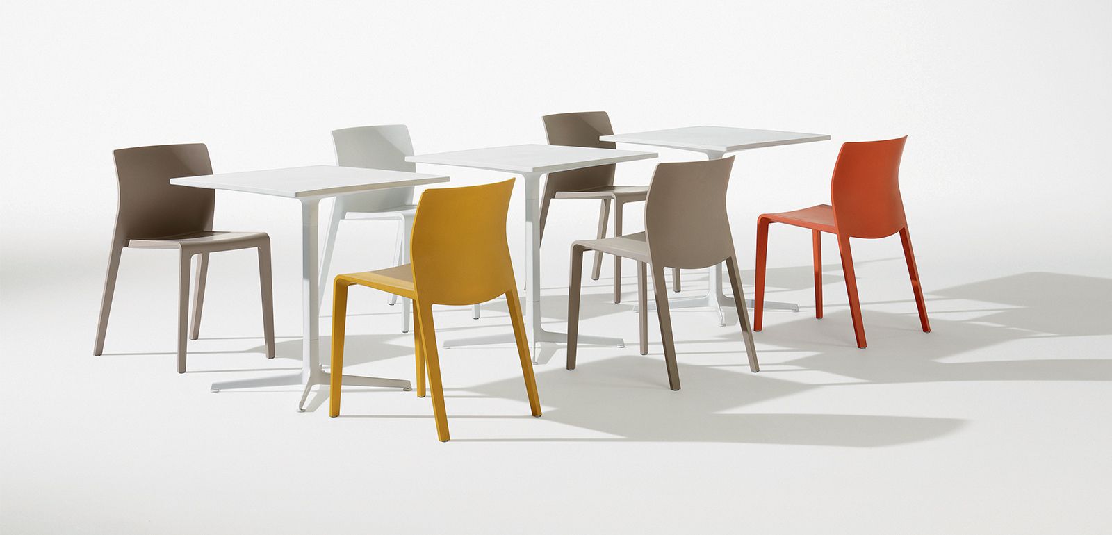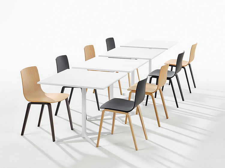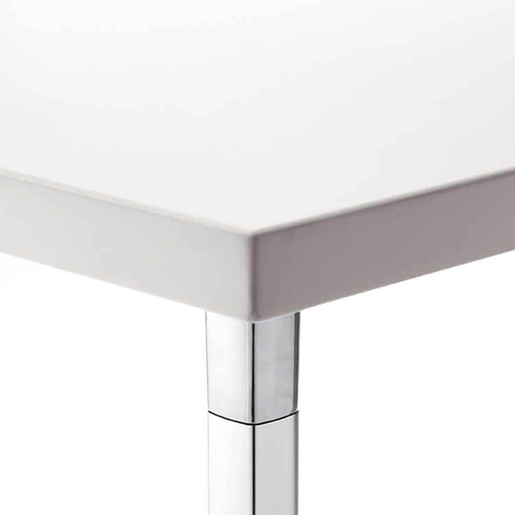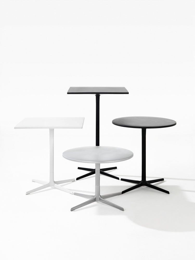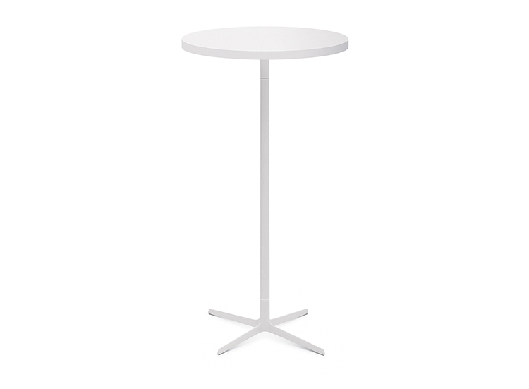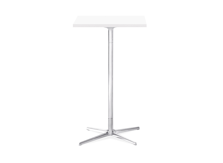 有四种高度(36.4,50,74和105厘米)可供选择,圆形和方形顶部有各种尺寸。 四星级底座采用闪亮或白色涂层铝制成。