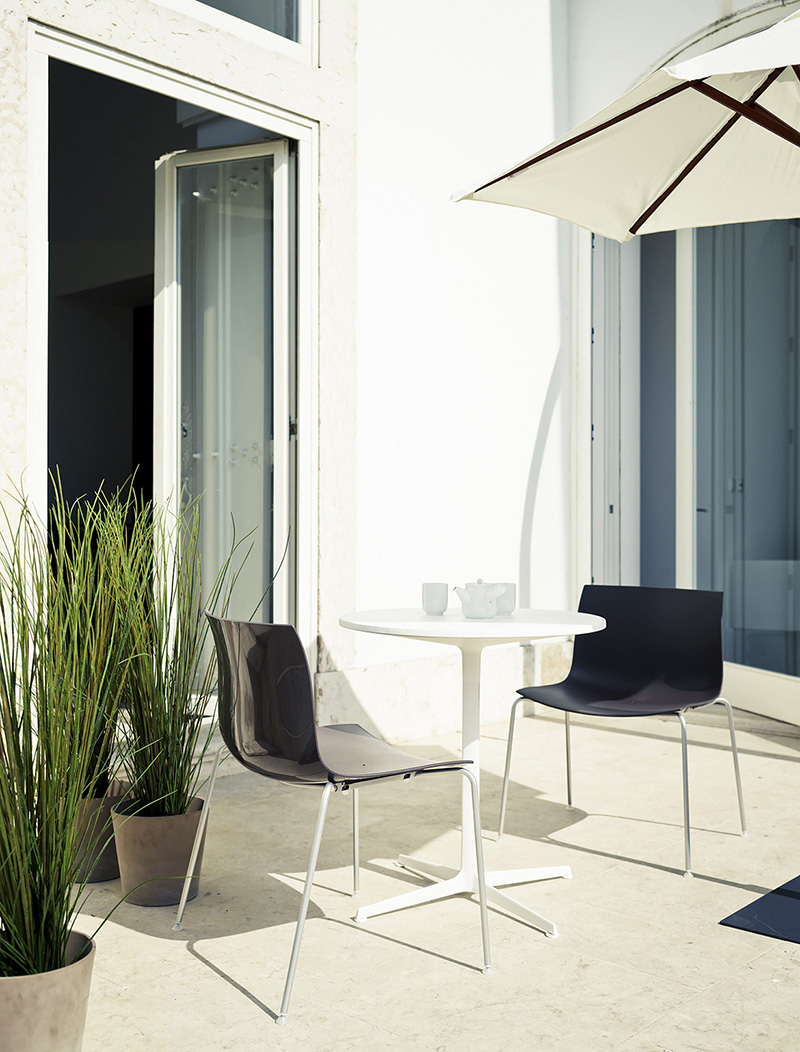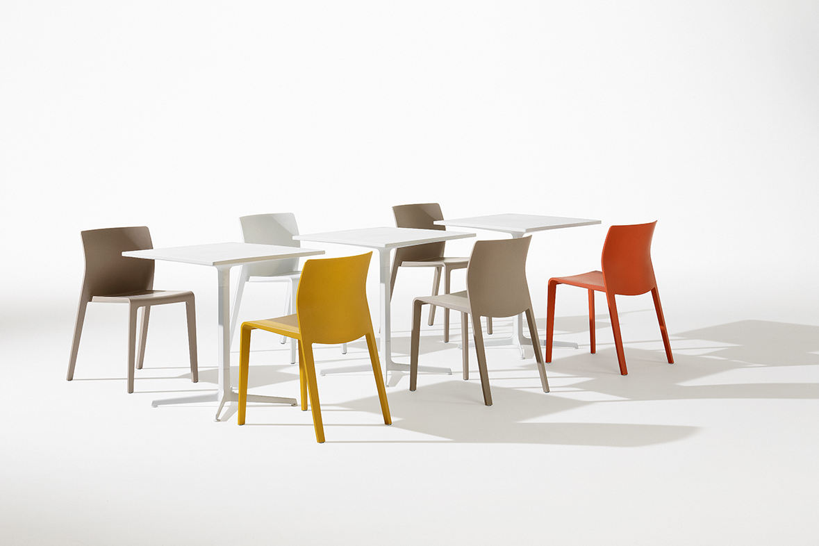 Ginger是一款优雅而多功能的桌子,具有简洁的线条和原始且极其坚固的框架。 它非常适合装饰室内和室外空间,如酒吧,咖啡馆或餐馆。 它有三种高度--50,74和105厘米 - 具有各种尺寸的圆形或方形聚丙烯顶部,以及抛光铝或涂白色或黑色的四星形底座。 所有型号均已获得环境产品声明(EPD)认证。