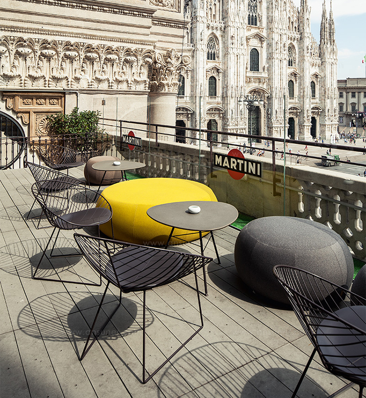 基座有三脚或四脚。全部采用白色,摩卡或绿色涂漆钢材制成。防水HPL上衣有灰色可供选择。