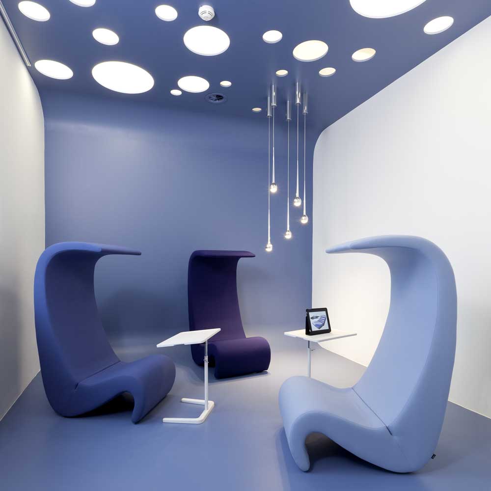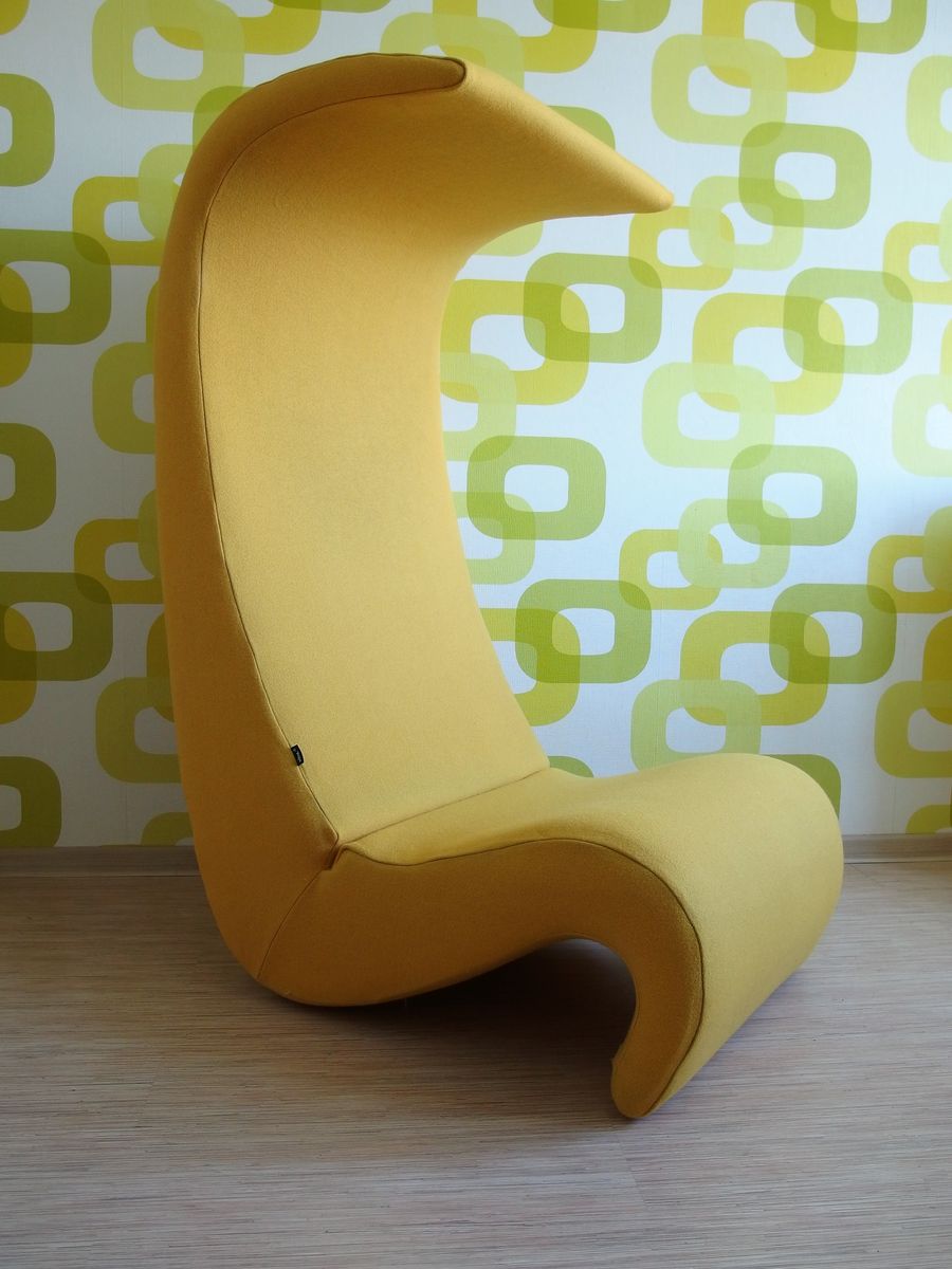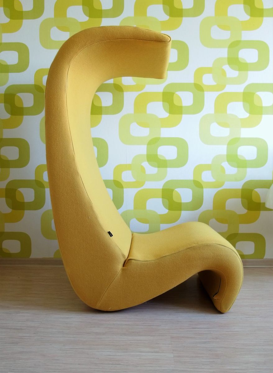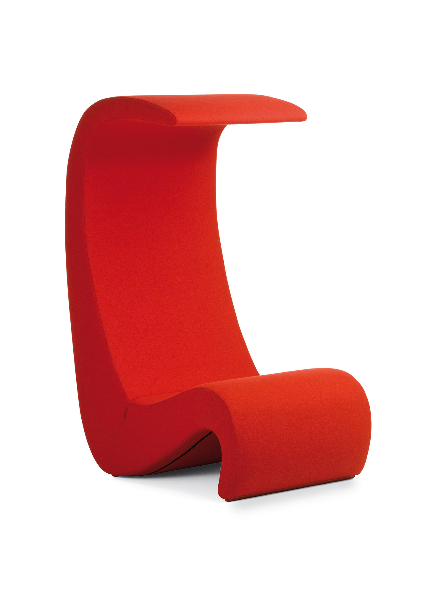 椅子的Amoebe Highback版本有一个灵活的靠背,可以在保姆的头部弯曲,形成一个雕塑的顶篷。 这种醒目的口音赋予椅子一种住所和隔离感。