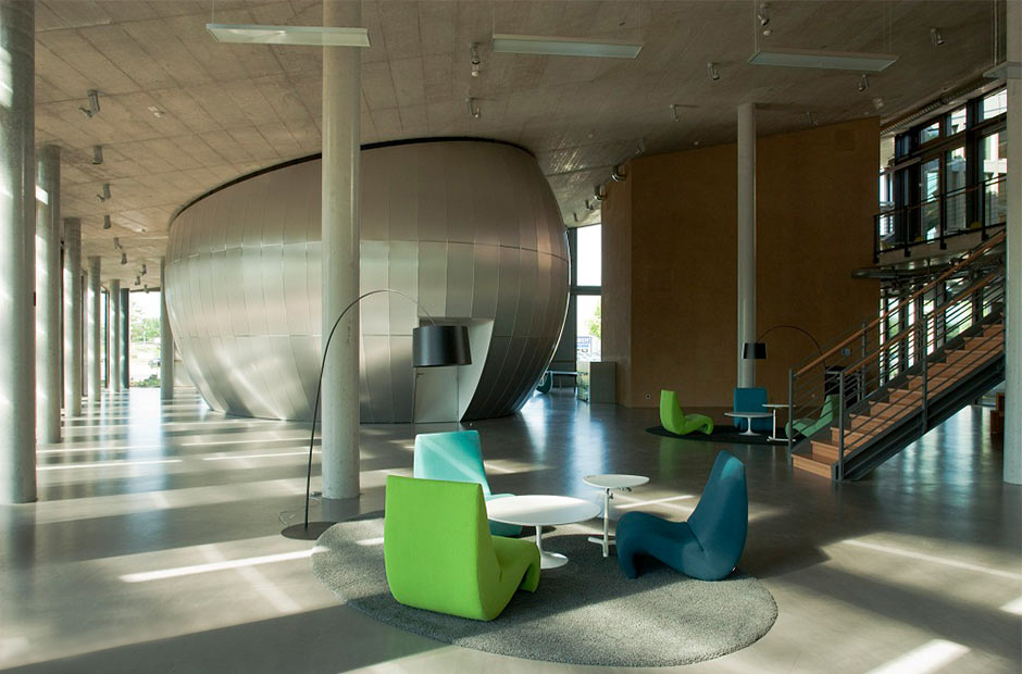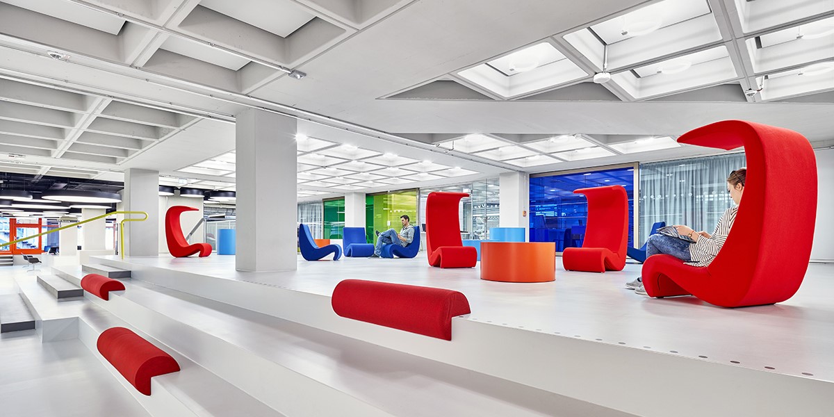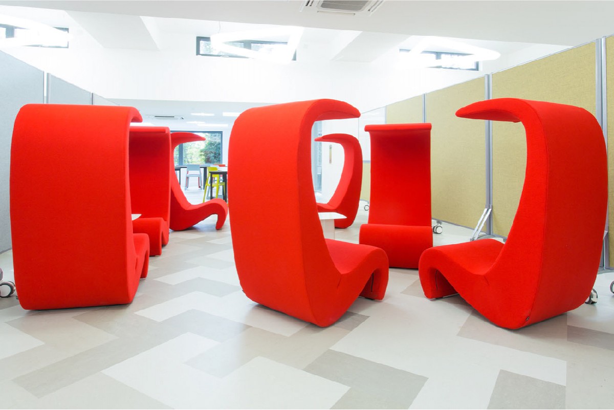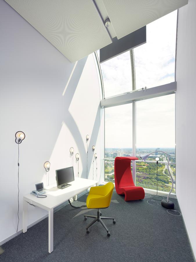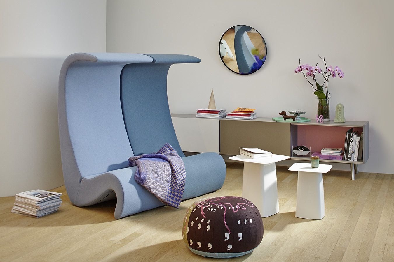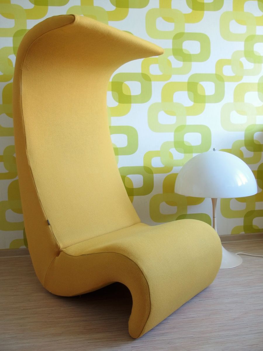 椅子的Amoebe Highback版本有一个灵活的靠背,可以在保姆的头部弯曲,形成一个雕塑的顶篷。 这种醒目的口音赋予椅子一种住所和隔离感。