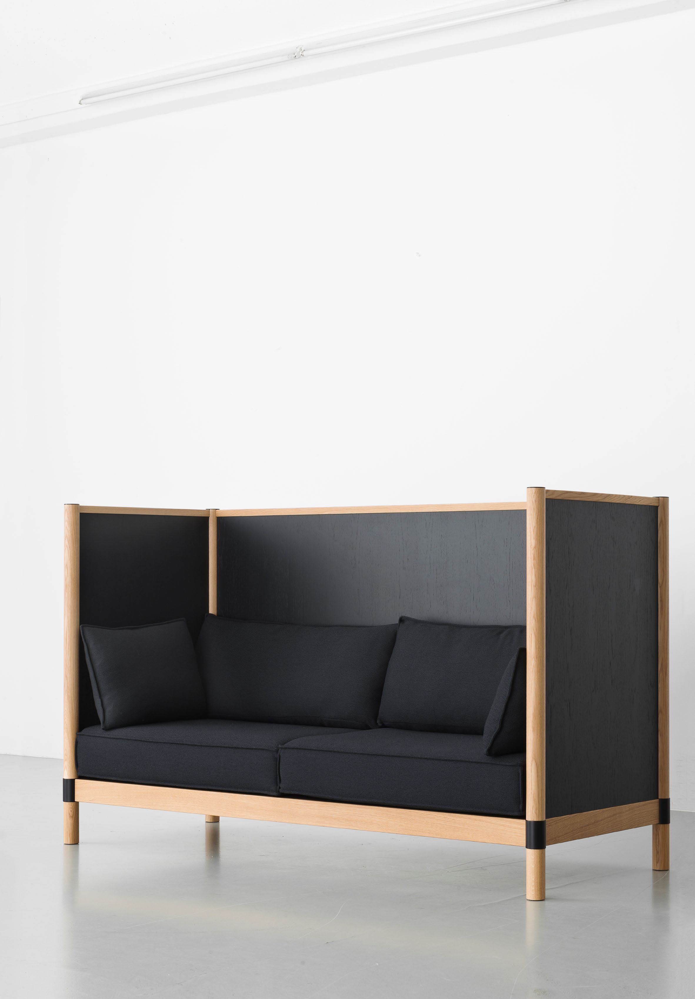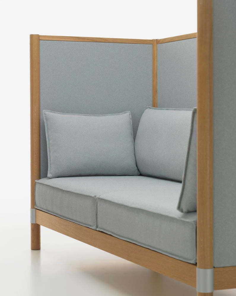 Cyl Sofa的侧面和后面板为休息提供了空间:低矮的面板发出了更多需要隐私的信号,高大的面板实际上创造了一个遮蔽的物理空间 - Cyl Sofa High可以保护用户不被看见。 两个Cyl Sofa高单元可以彼此相对放置,以创建一个自发的会议室,无需任何固定结构。 沙发坚固的室内装潢支撑着直立的坐姿,有利于工作任务和会议; 面板有木饰面或织物覆盖。