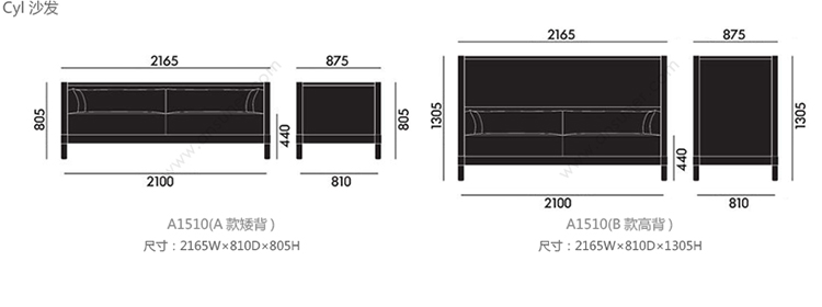 Cyl 沙发 系列尺寸/示意图
