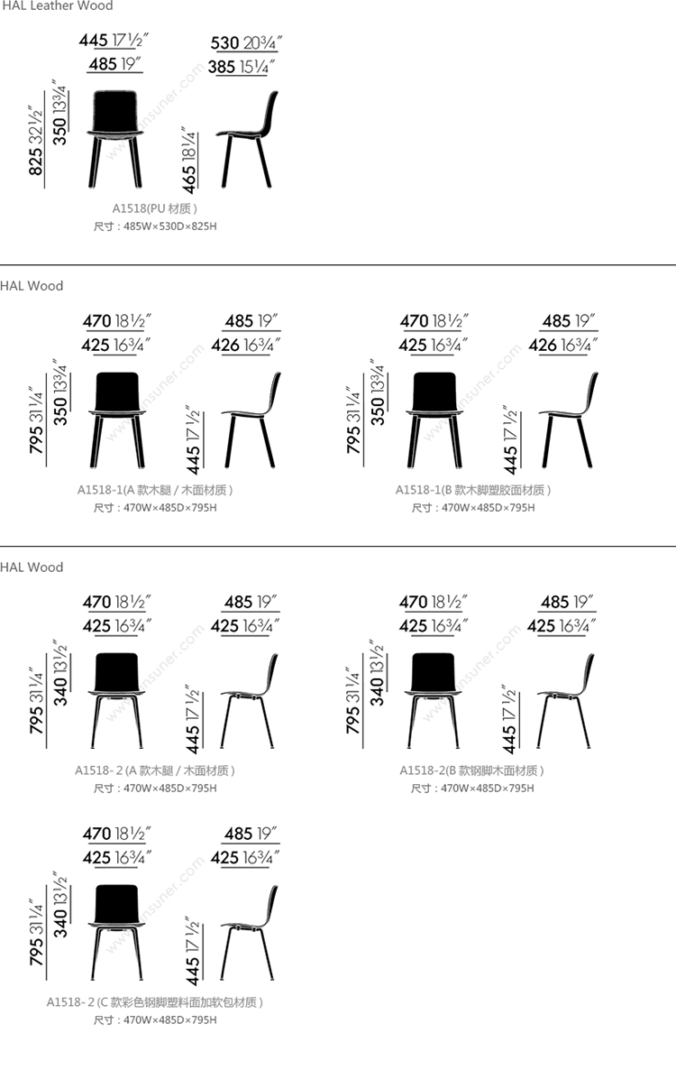 HAL Leather Wood 系列尺寸/示意图