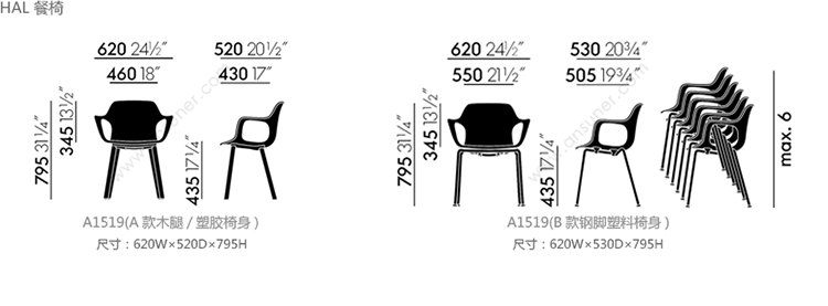 HAL 餐椅 系列尺寸/示意图