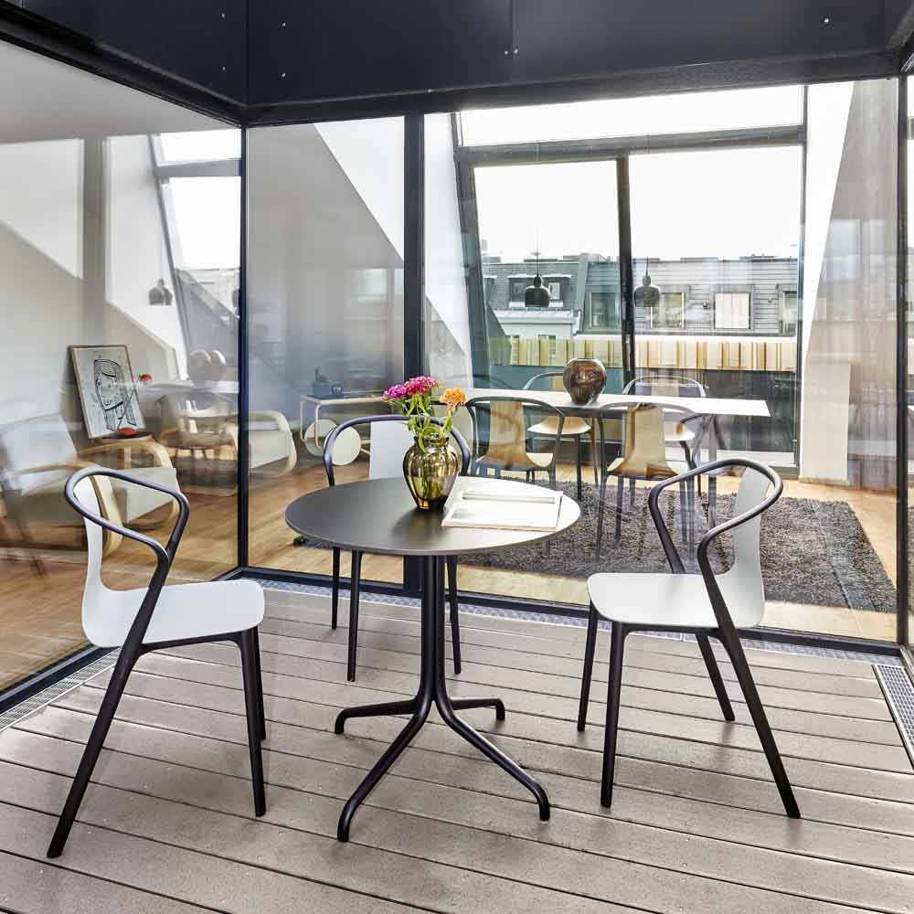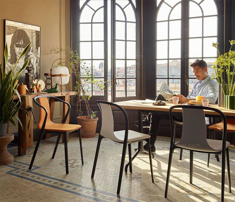 Belleville扶手椅是一种混合座椅,其座椅外壳有塑料,木质或皮革或织物覆盖。 每个版本都赋予优雅椅子独特的个性。 特有的前弯曲扶手提供轻松舒适,带塑料座椅外壳的型号也适合户外使用。
