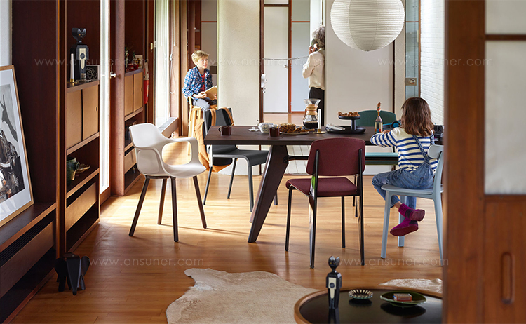 标准SP(SiègeenPlastique)从过去到现在构建了一座桥梁,使这款标志性的椅子具有现代外观而不改变其形状:由坚固的塑料制成,标准SP的座椅表面和靠背采用精细调制颜色的调色板。 粉末涂层底座的耐用哑光表面与椅子的塑料表面相匹配。