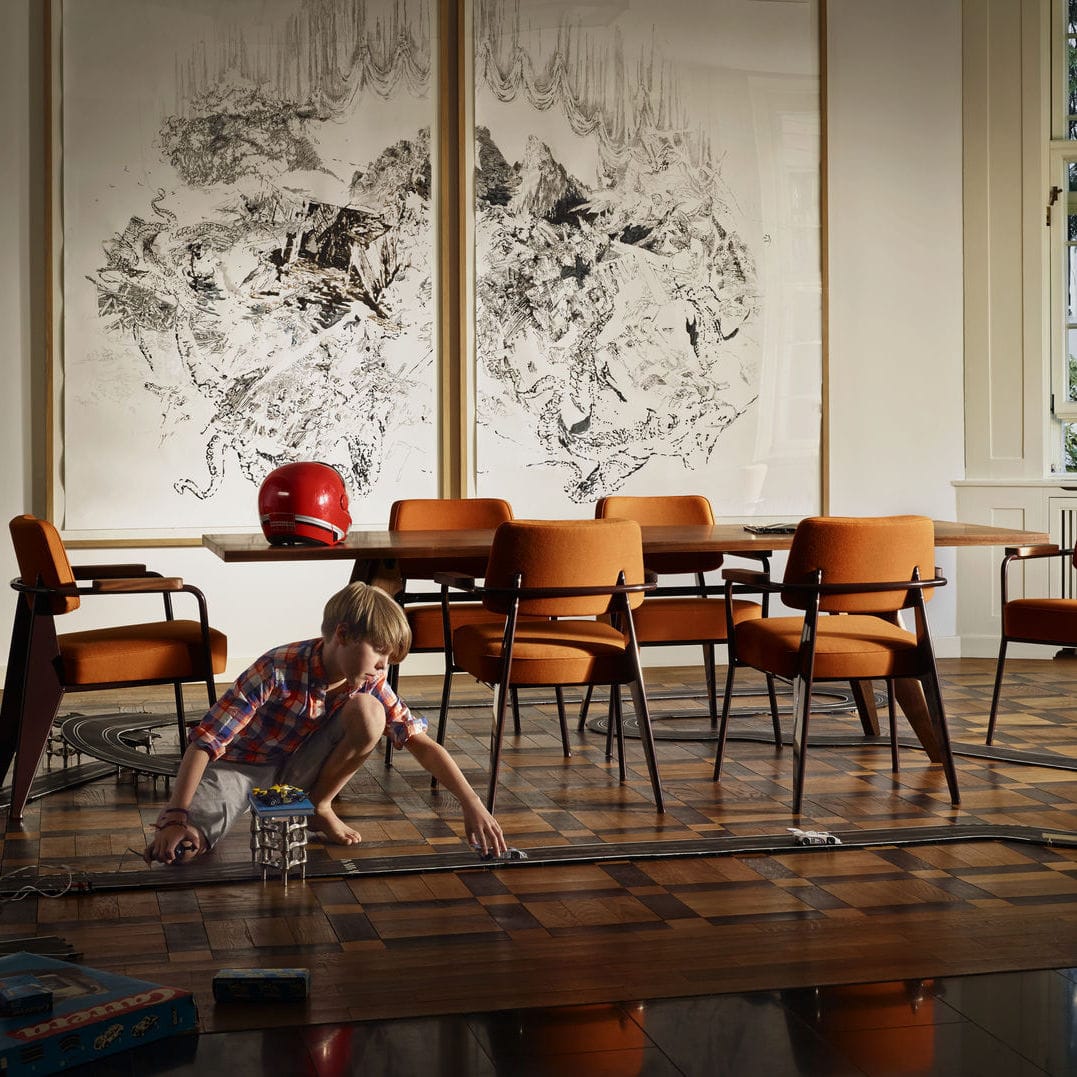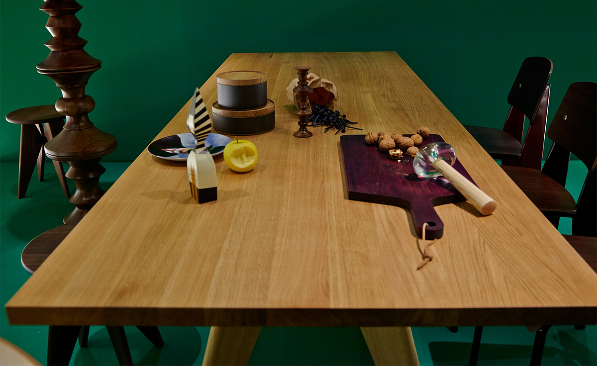 JeanProuve在第二次世界大战期间开发了Table Solvay,由于当时金属稀缺,他设计了优雅的木腿腿。 天然橡木,深色烟熏橡木或美国胡桃木的实木组件为桌子带来轻松和精致的感觉。