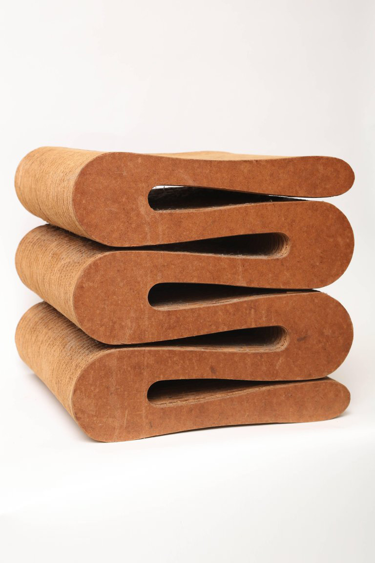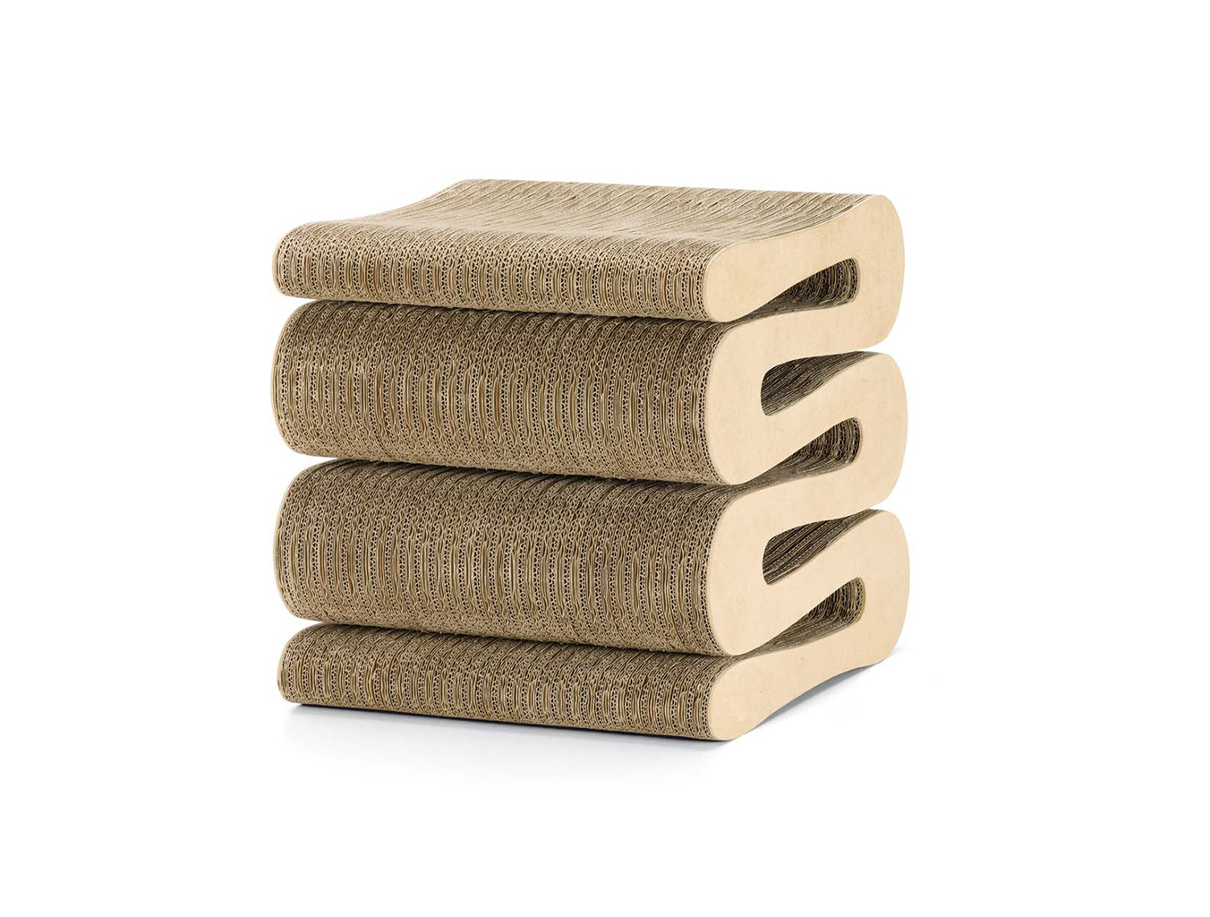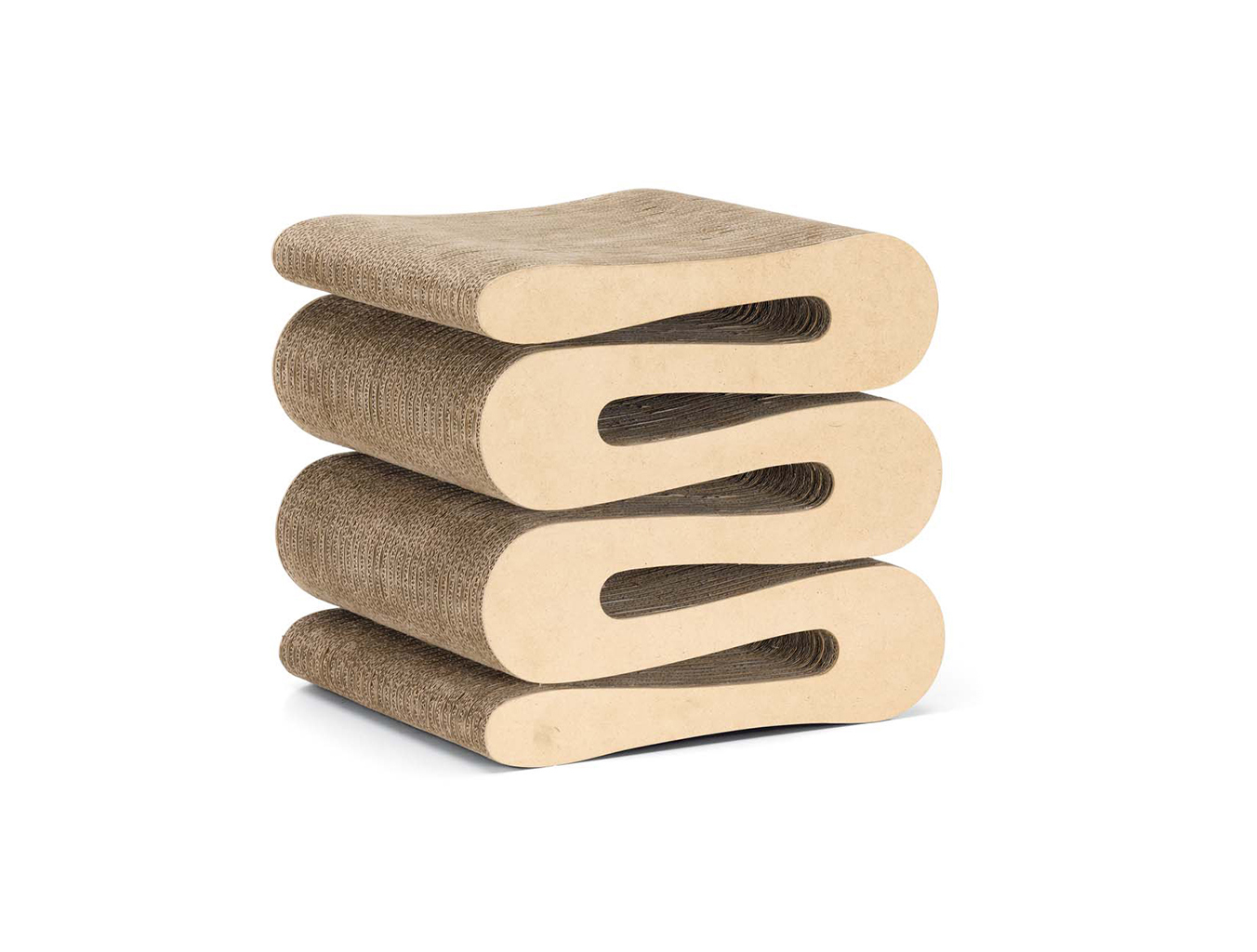Wiggle Stool是Frank Gehry 1972年家具系列“Easy Edges”的一部分,该系列成功地为纸板等日常材料引入了新的美学尺寸。 标志性的凳子结实耐用,为任何室内装饰增添了醒目的音符。