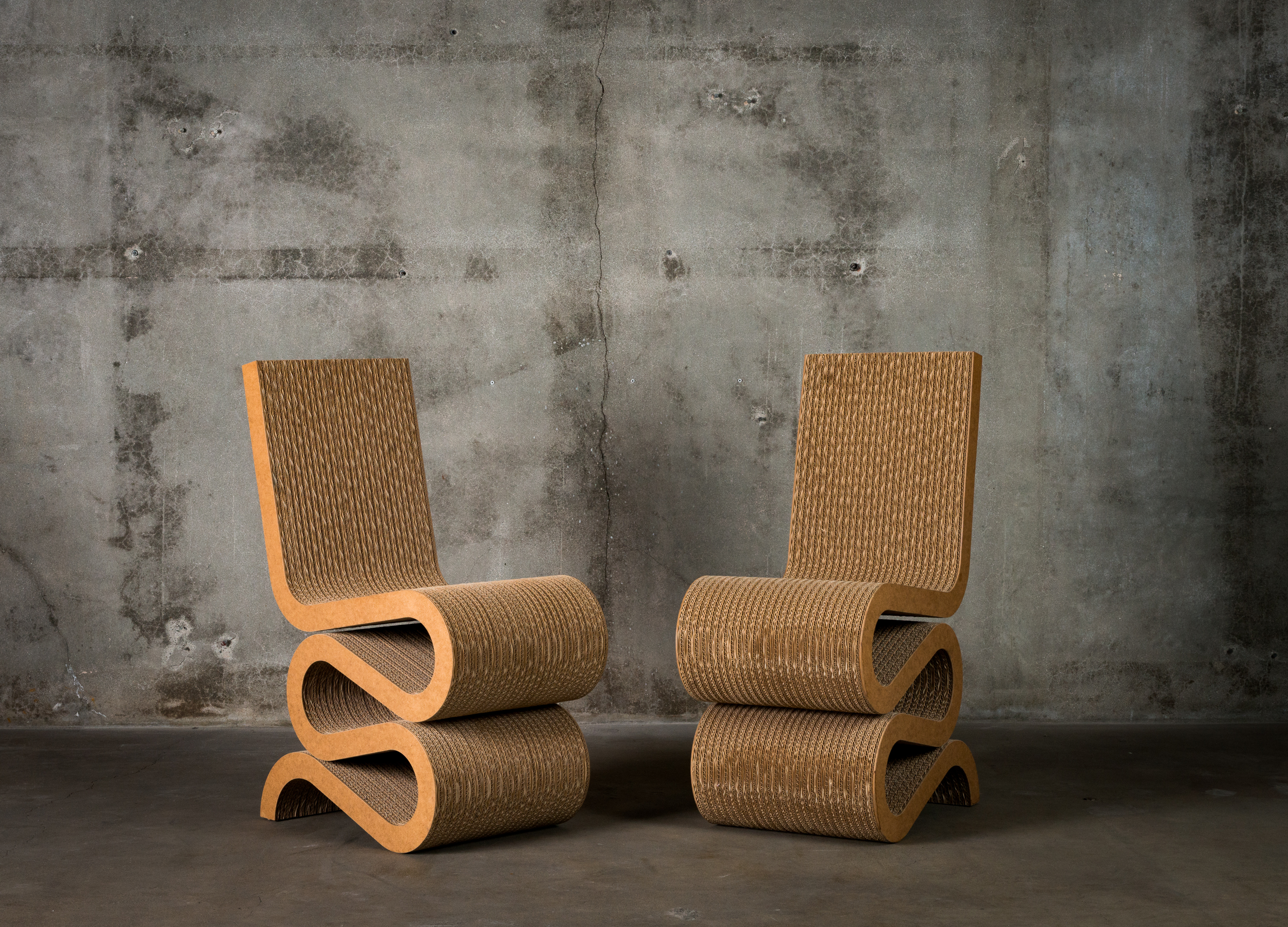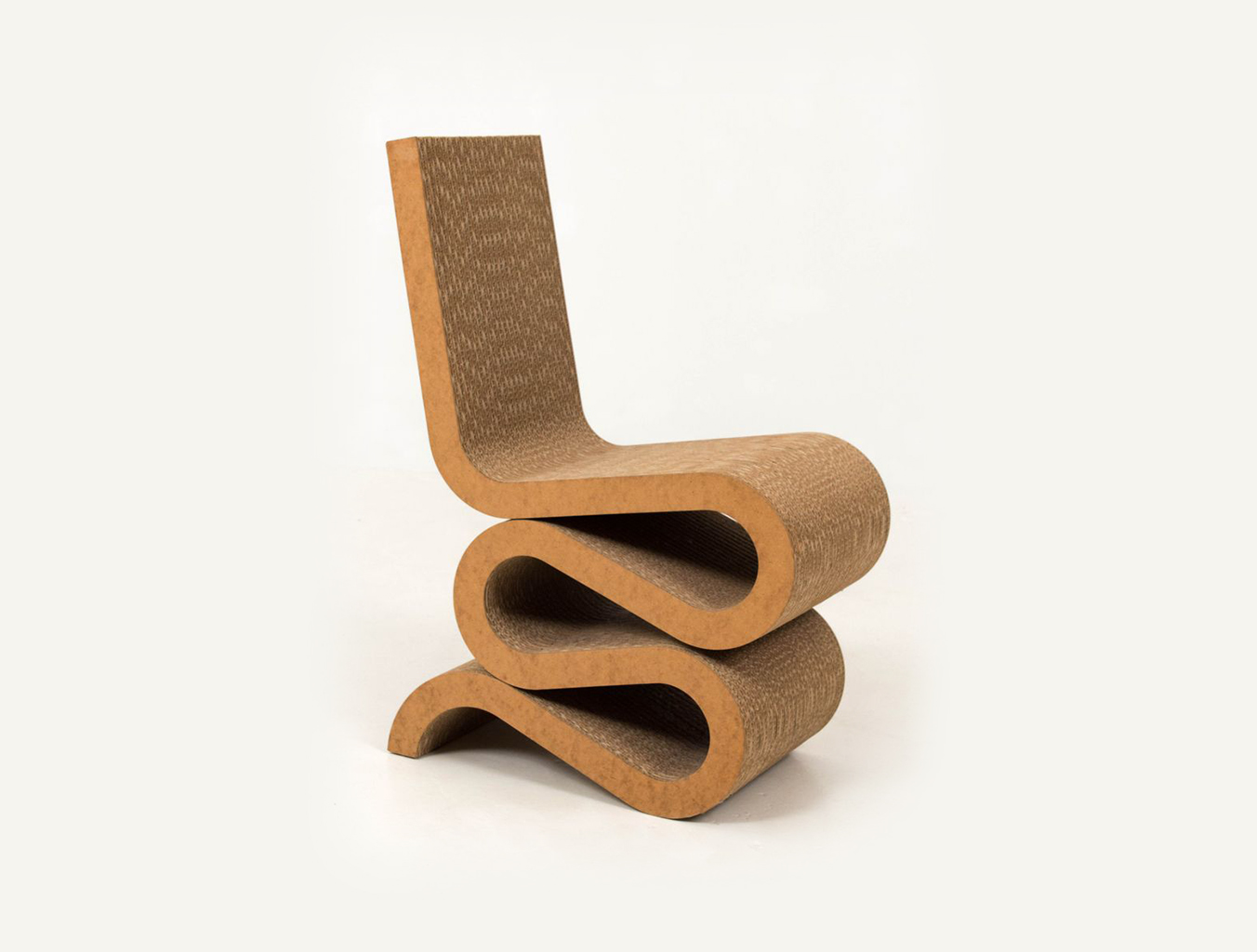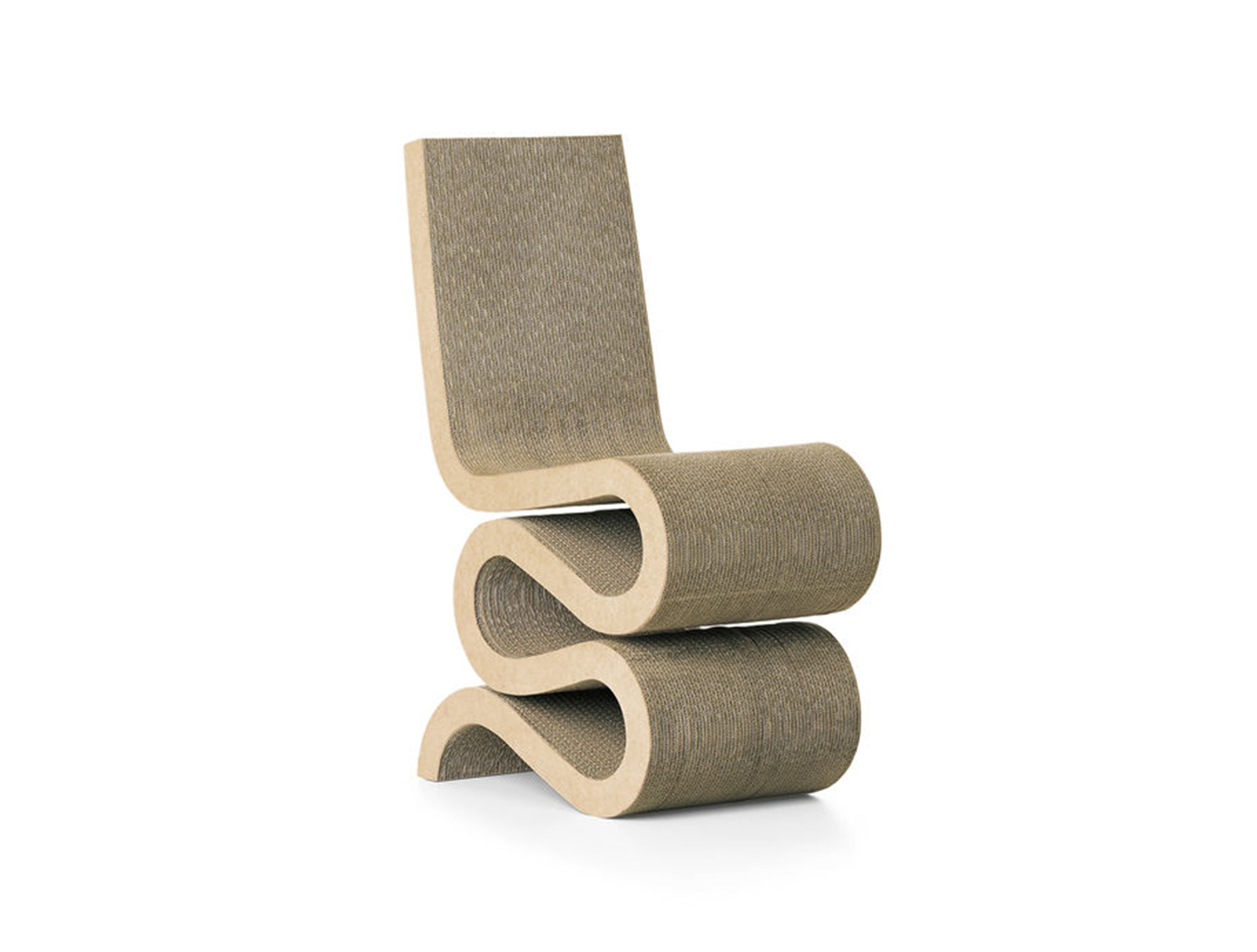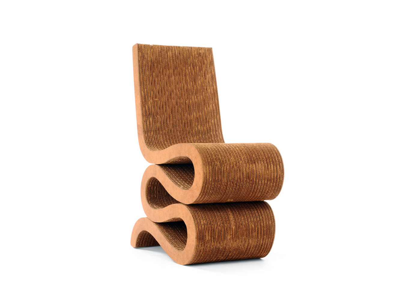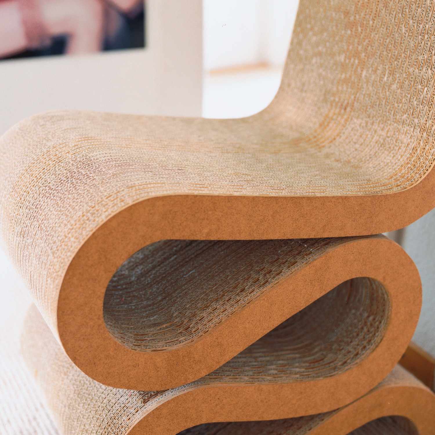 The architect Frank Gehry is known for his use of unusual materials. With his furniture series 'Easy Edges', he succeeded in bringing a new aesthetic dimension to such an everyday material as cardboard.