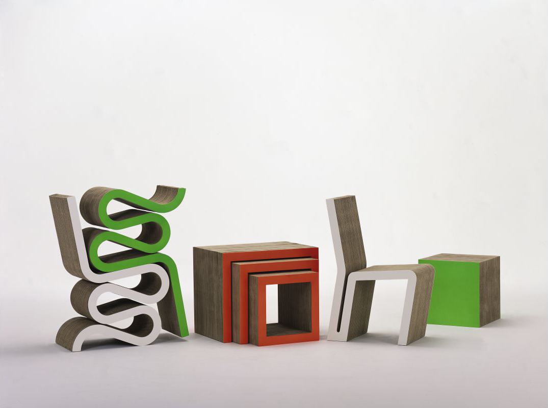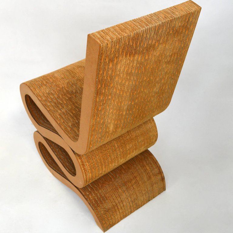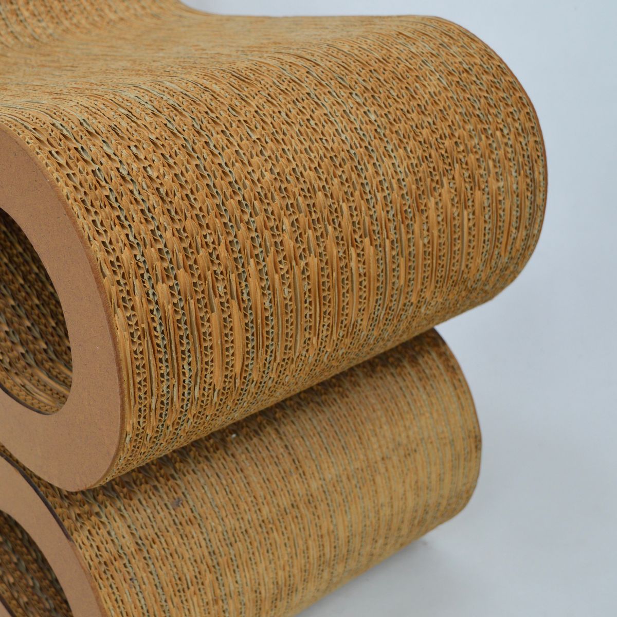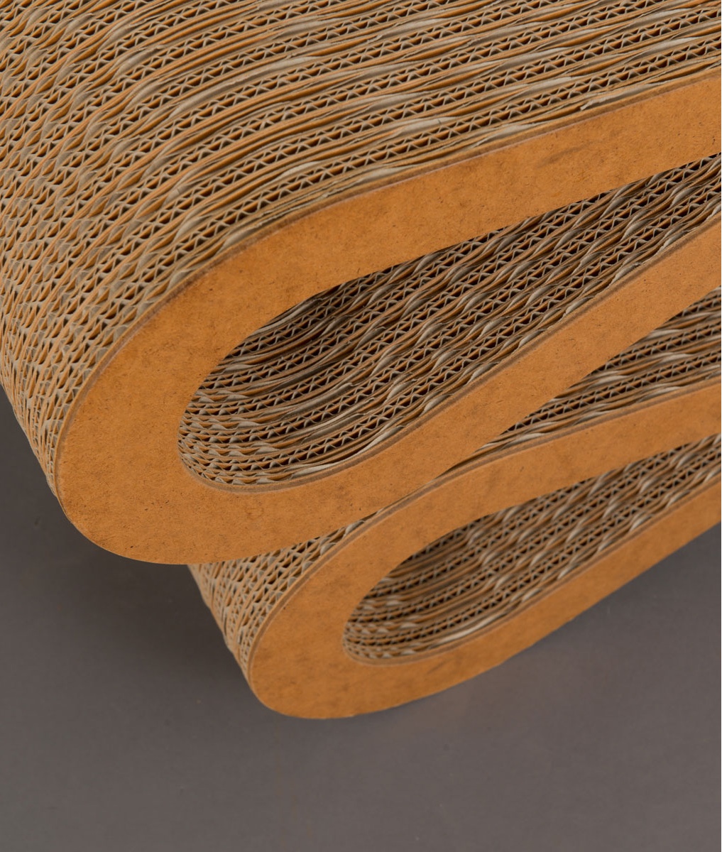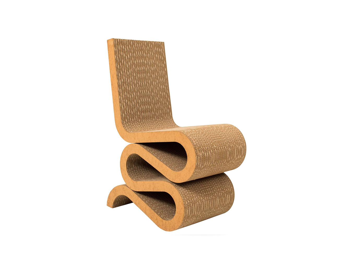 The architect Frank Gehry is known for his use of unusual materials. With his furniture series 'Easy Edges', he succeeded in bringing a new aesthetic dimension to such an everyday material as cardboard.