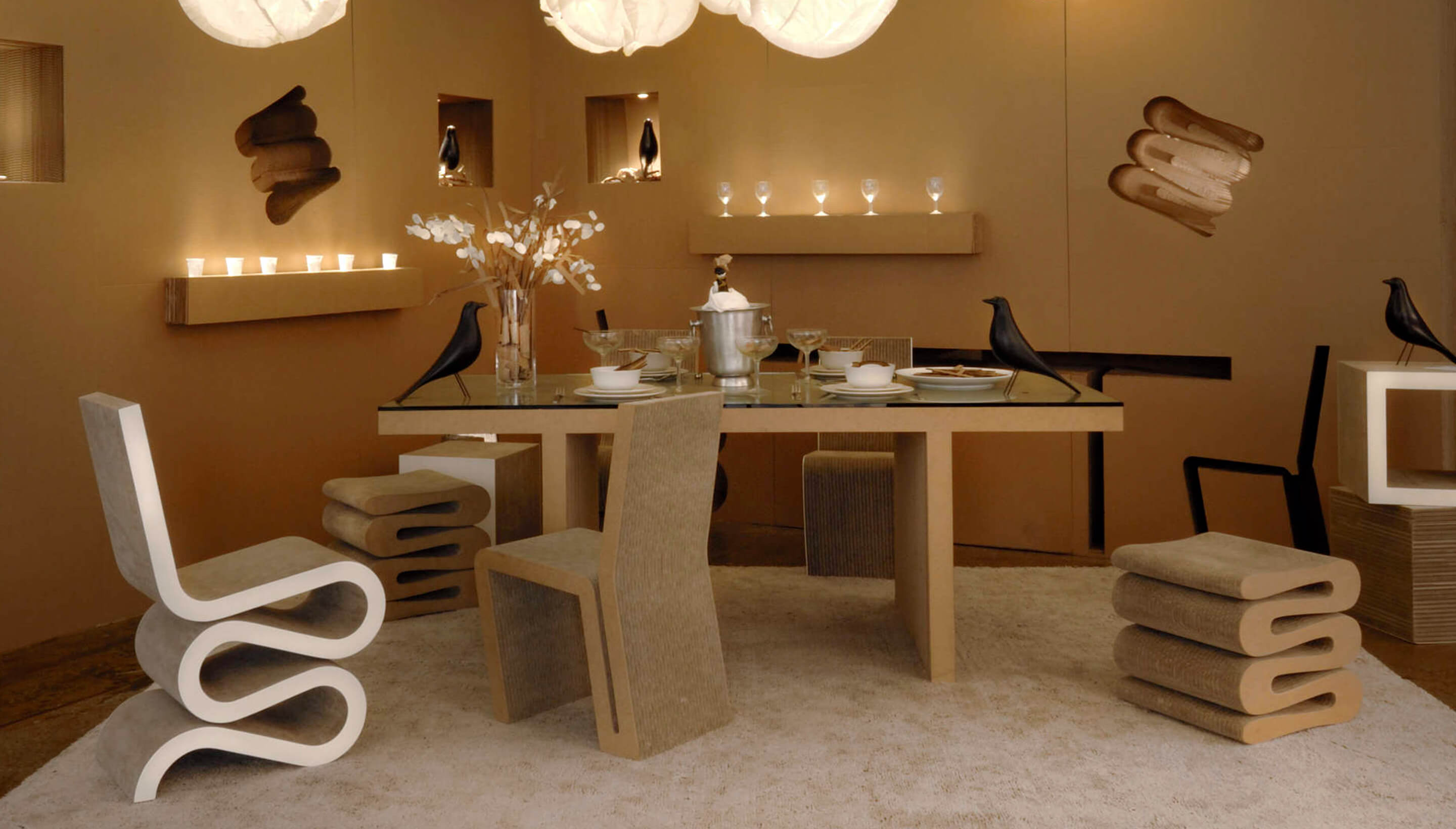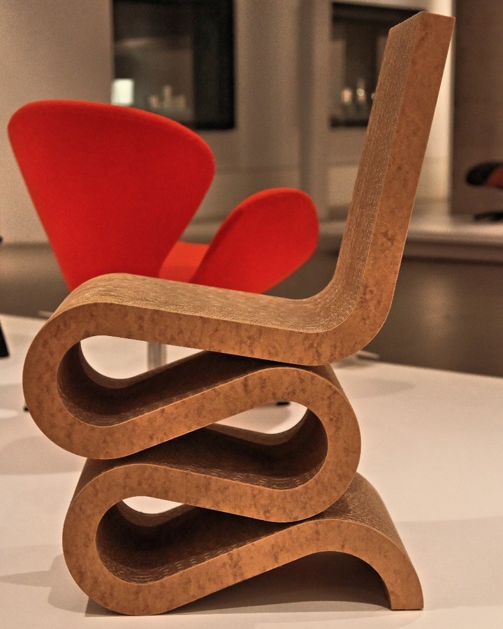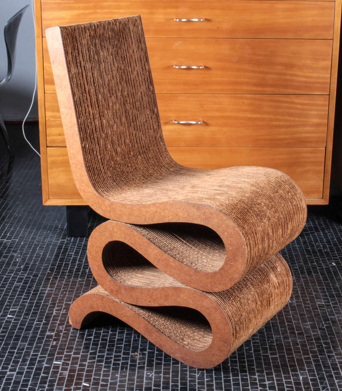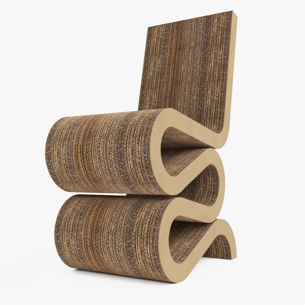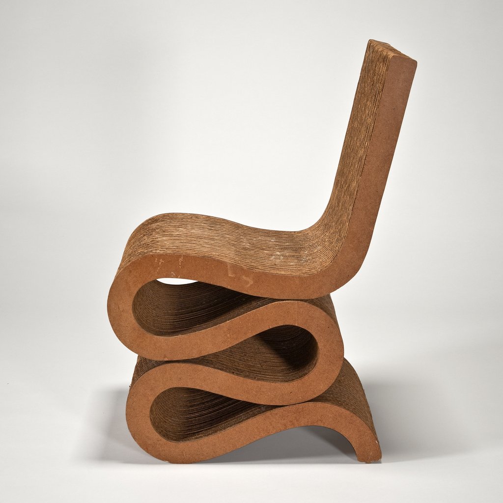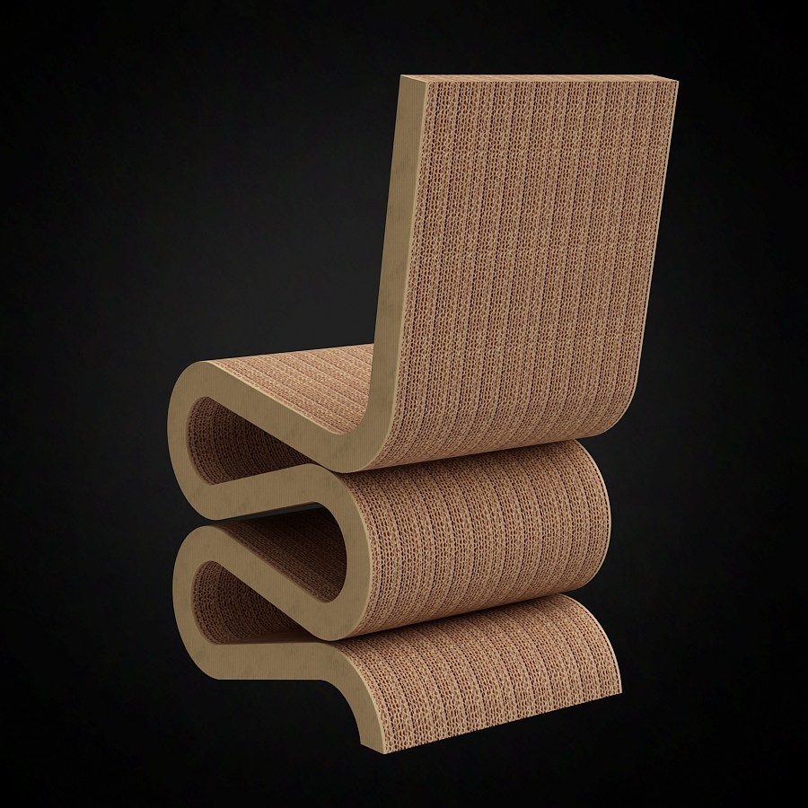 The architect Frank Gehry is known for his use of unusual materials. With his furniture series 'Easy Edges', he succeeded in bringing a new aesthetic dimension to such an everyday material as cardboard.