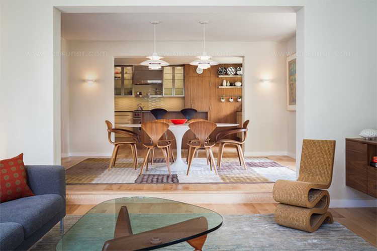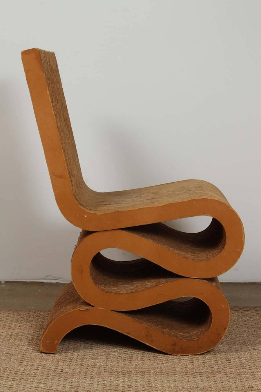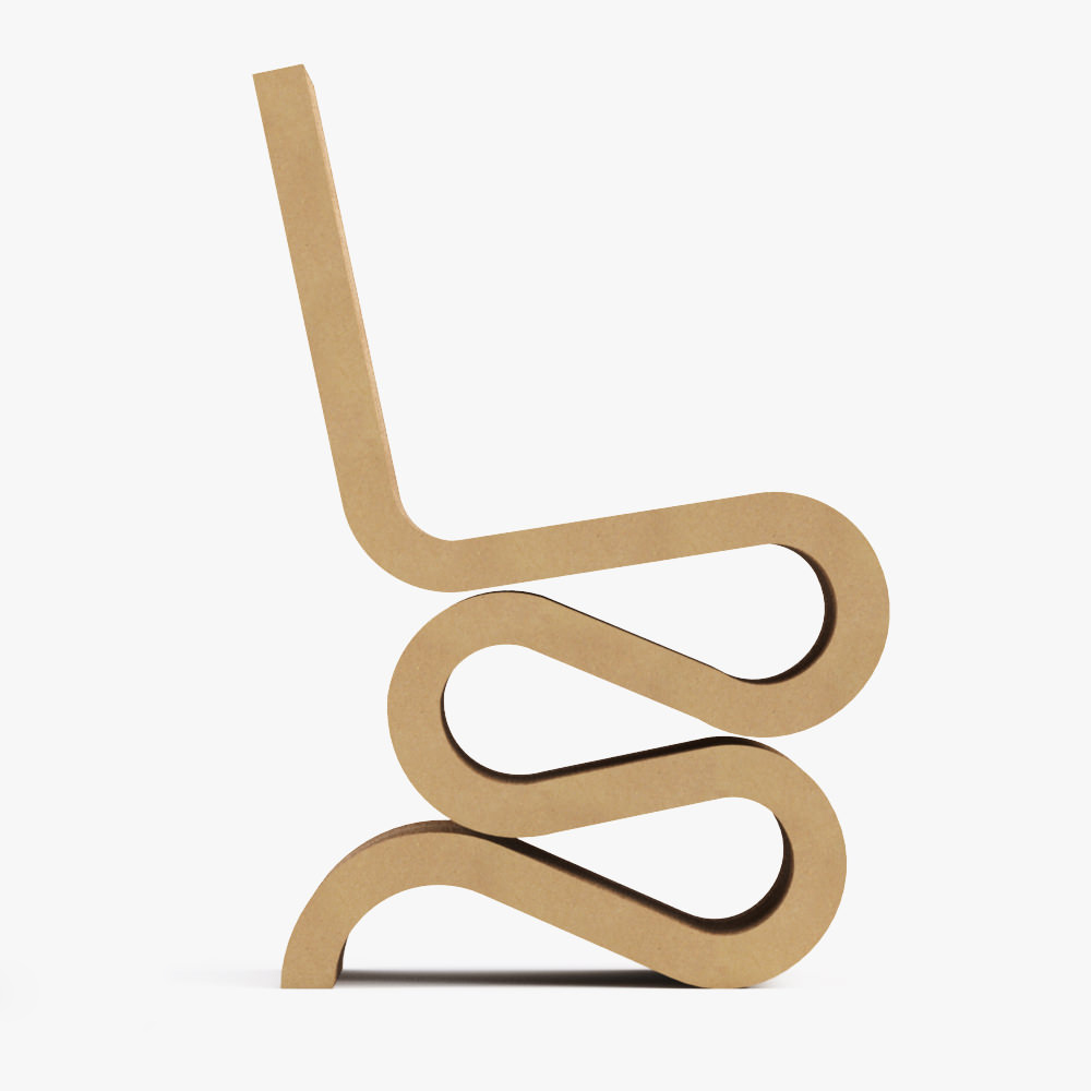 The sculptural form of the Wiggle Side Chair makes it stand out. Although surprisingly simple in appearance, it is constructed with the consummate skill of an architect, making it not only very comfortable but also durable and robust.