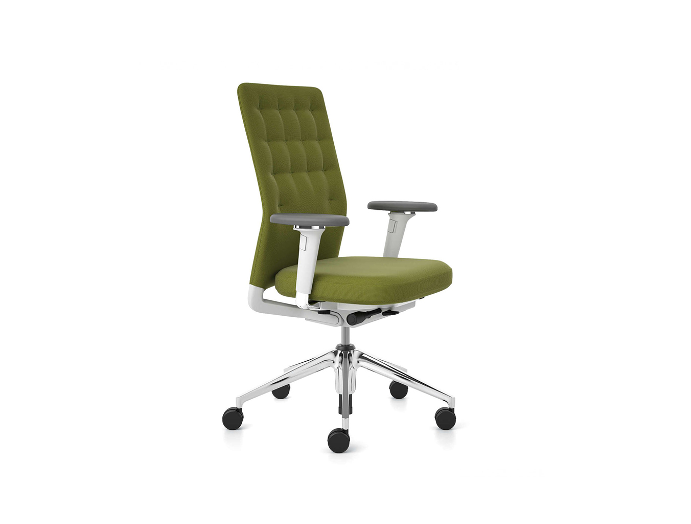 凭借其紧凑的衬垫,ID Trim办公椅的靠背传达出经典优雅和高品质工艺的感觉。 带有一体式腰部支撑的夹层结构提供了舒适的软垫靠背,同时几乎与网状靠背一样纤薄 - 为办公椅靠背提供了这两种结构类型的替代方案。