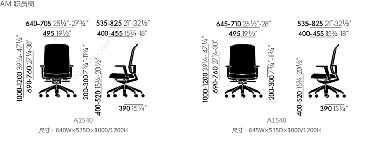 AM 职员椅 系列尺寸/示意图