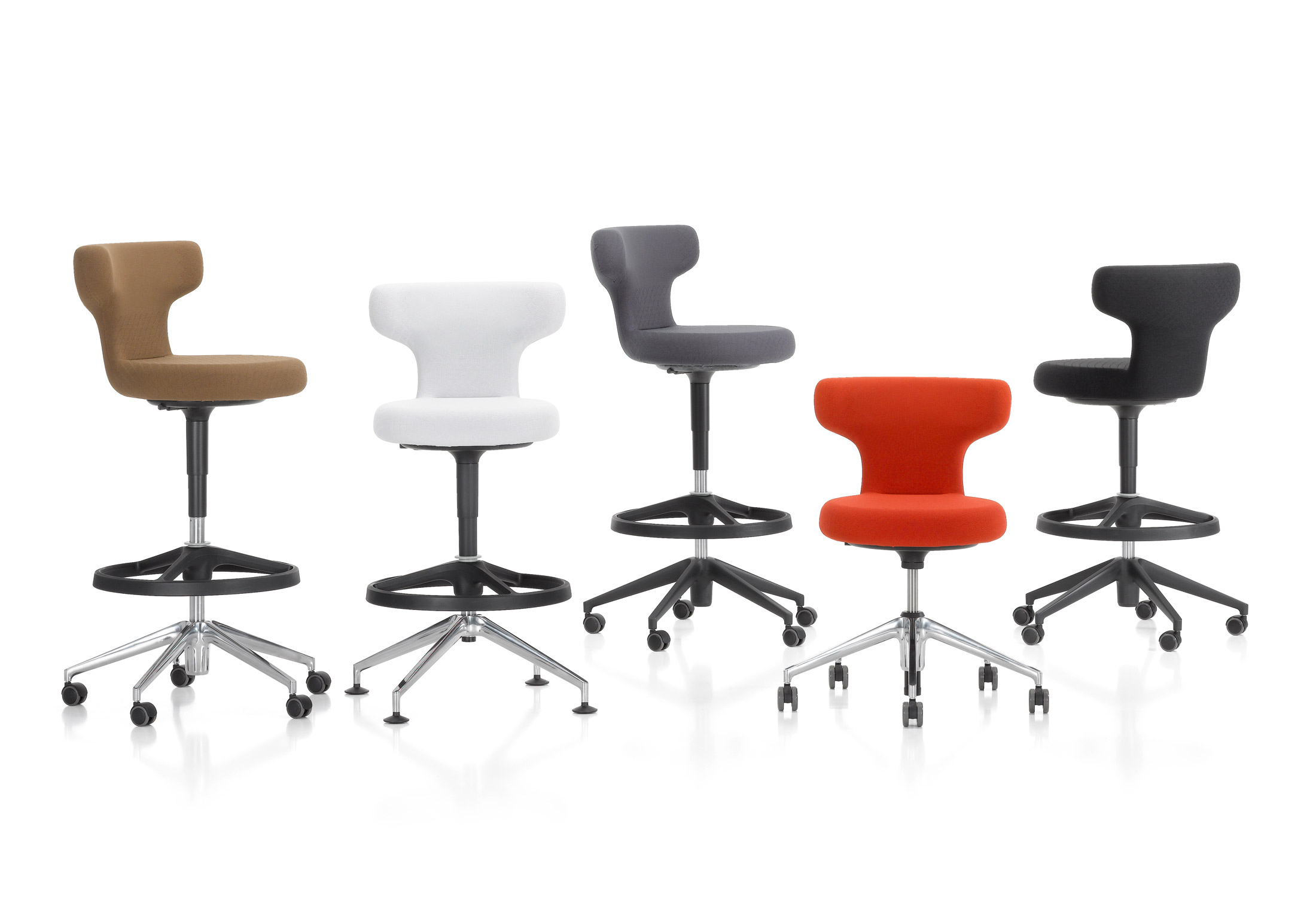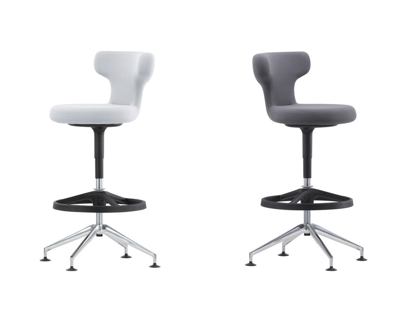 Pivot Counter Stool椅子有一个圆形和弯曲的靠背向前。 它有助于改变姿势,因为椅子也可以横向使用或作为倾斜的稳定支撑。 柔软的衬垫确保了极佳的舒适性。
