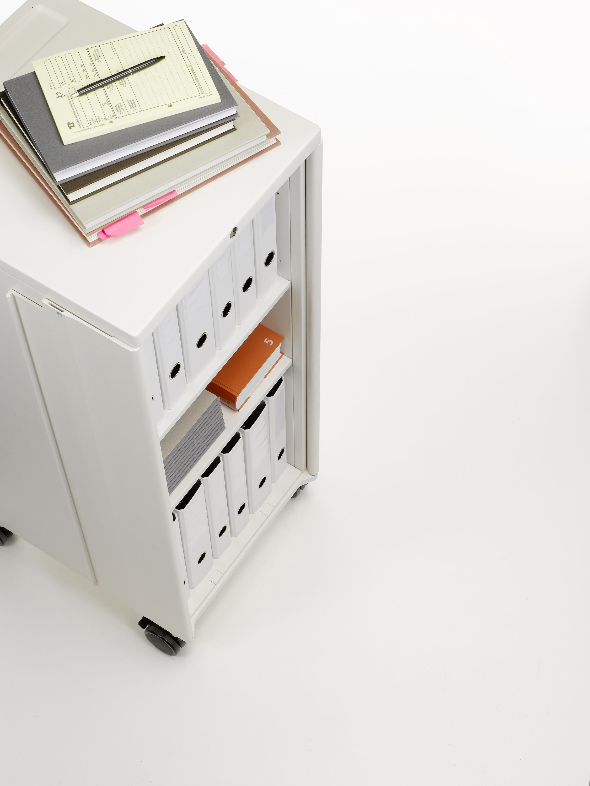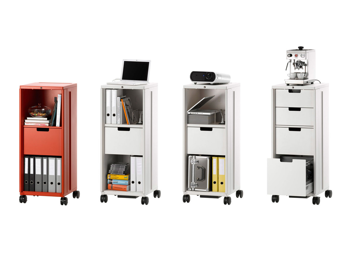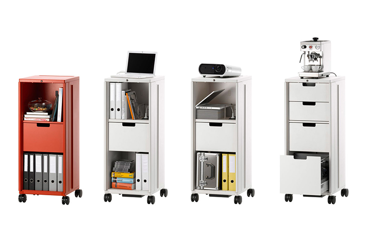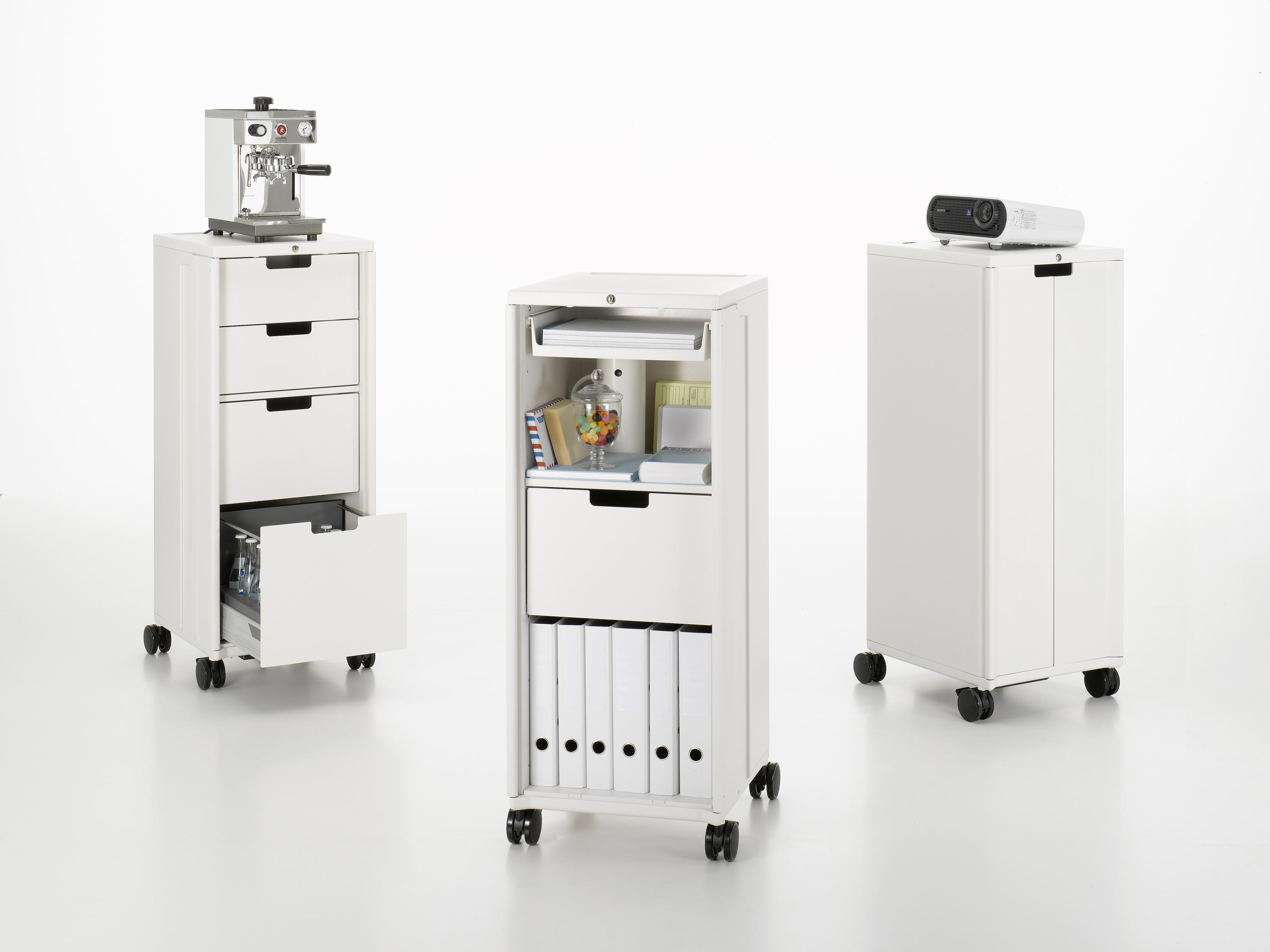 飞机手推车激发了建筑师和设计师Christoph Ingenhoven的灵感,开发出带Vitra的移动存储家具Caddy。 由粉末涂层钢板制成,Caddy坚固耐用,其各种家具选择使其成为办公室的实用伴侣:它还可以配置为复杂的电气化站立工作场所,作为演示投影仪的基础或作为餐饮用途的帮手。