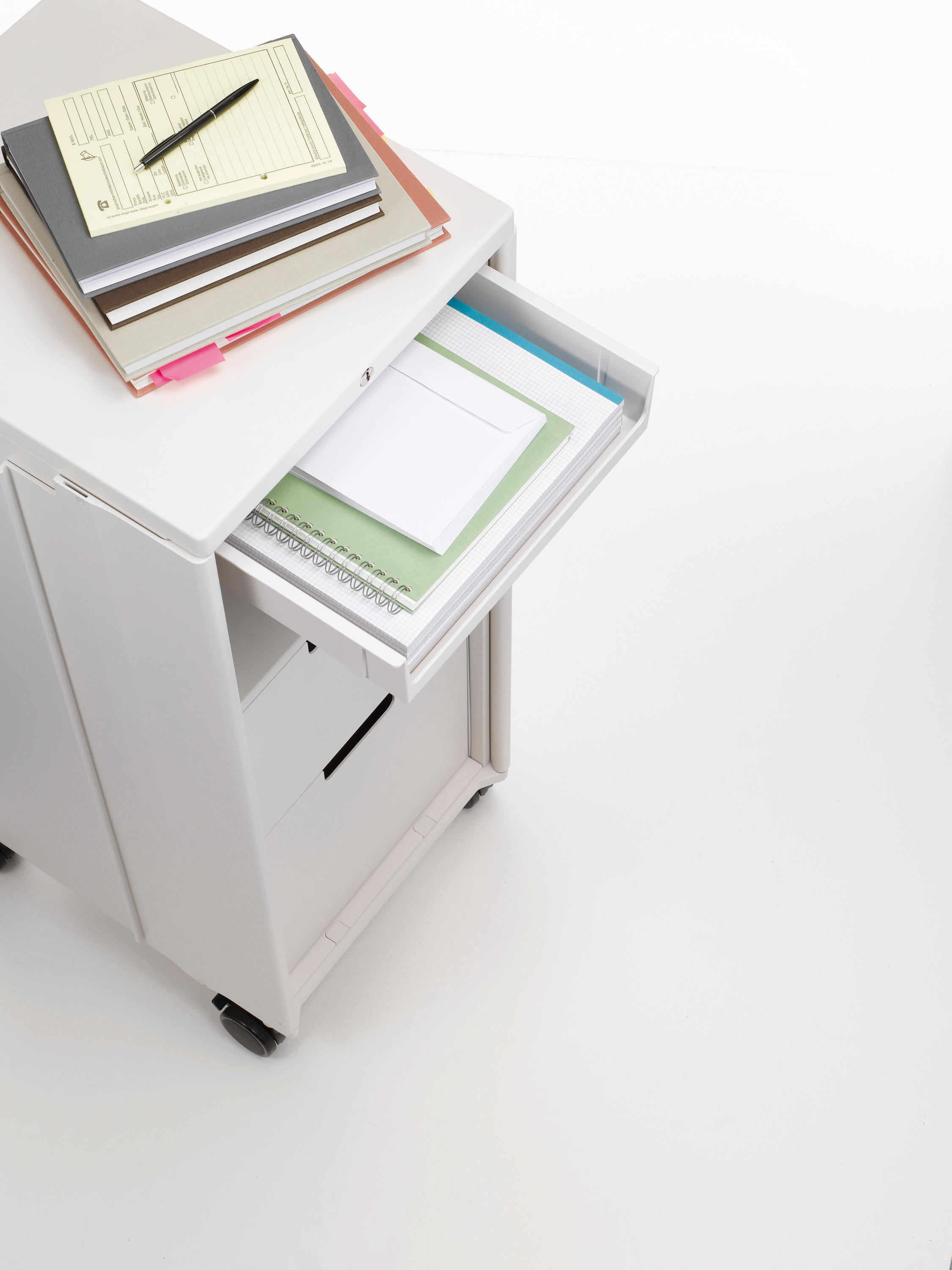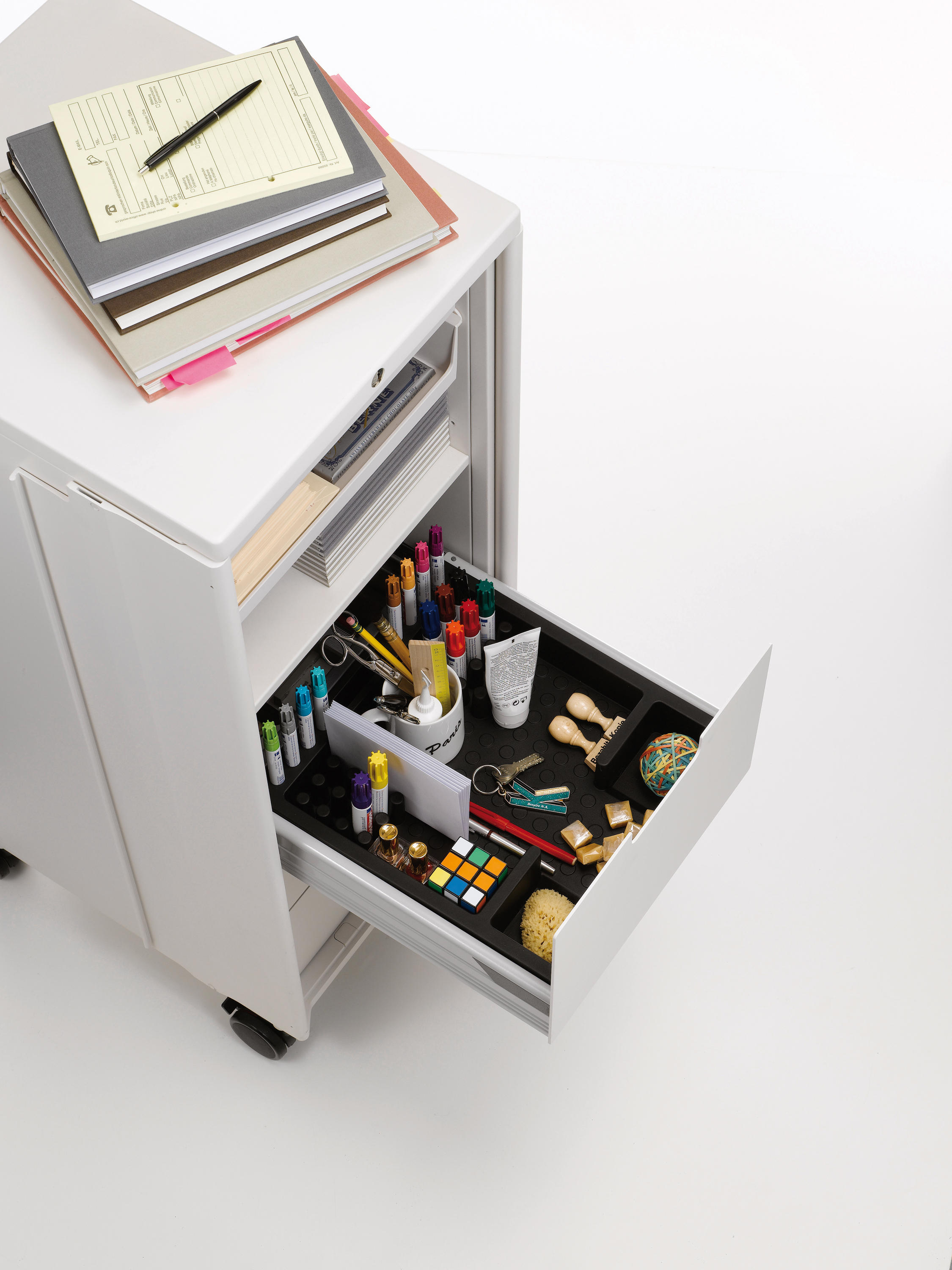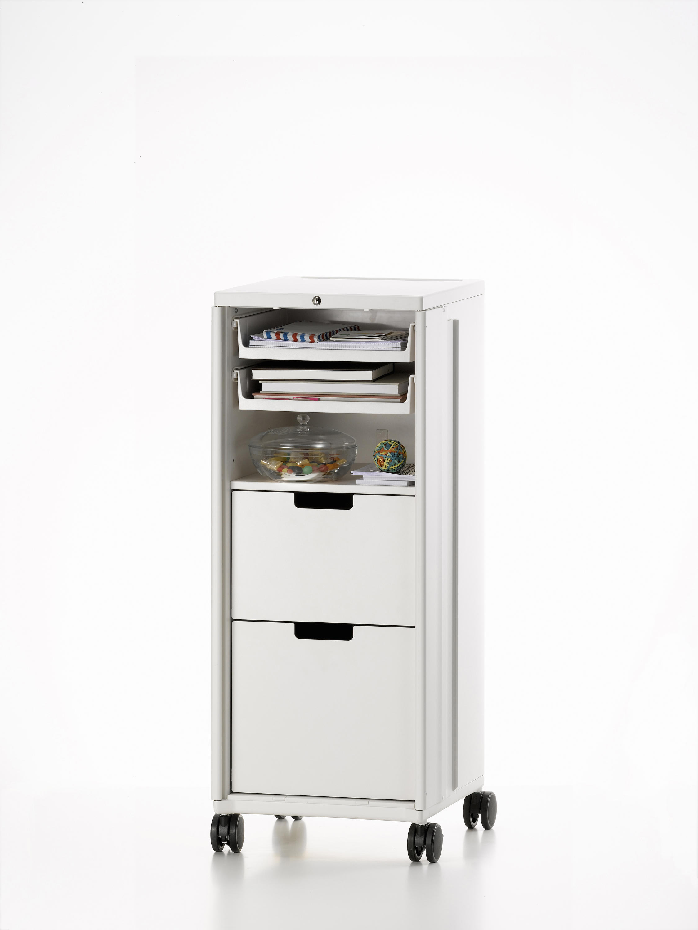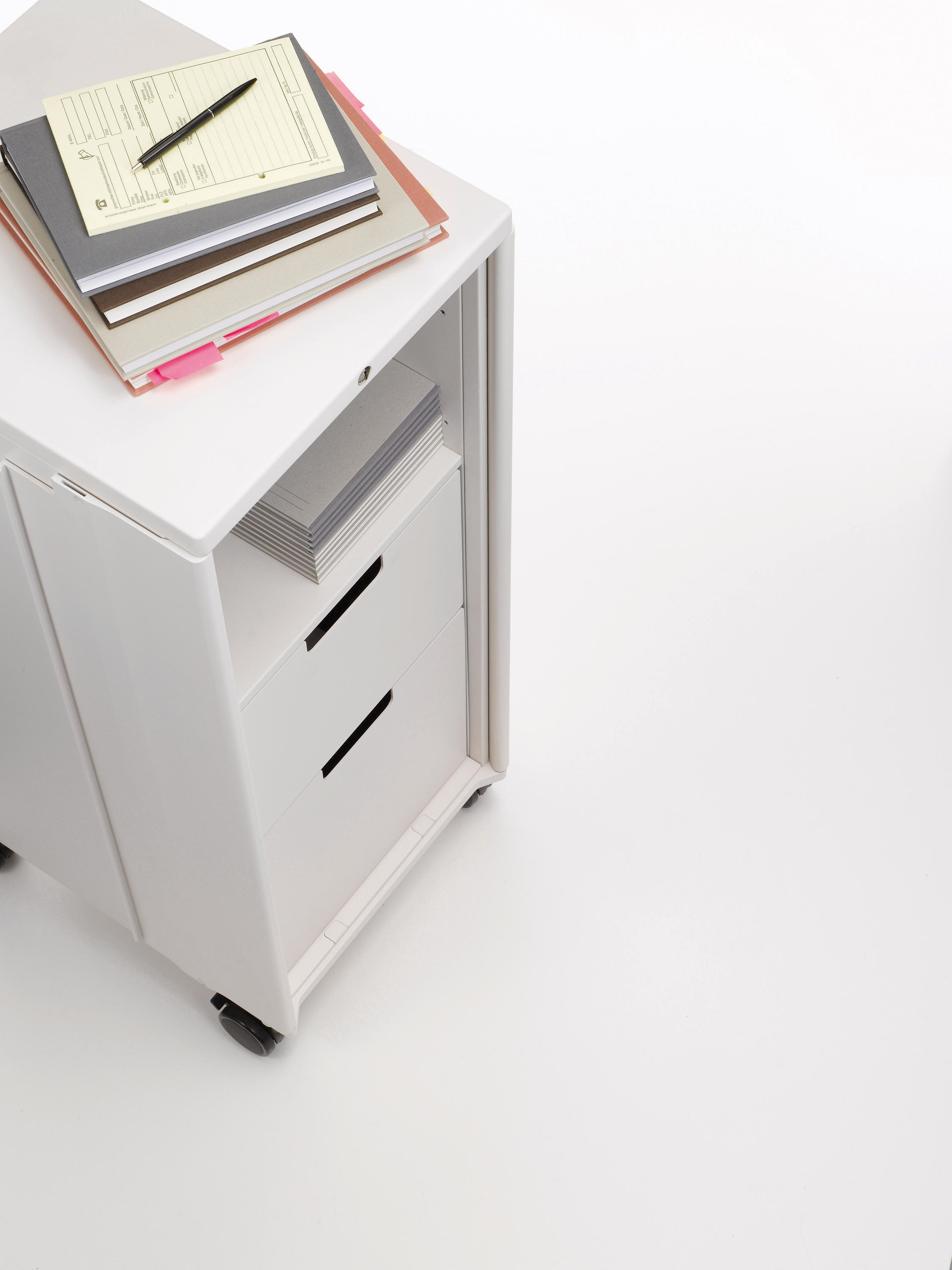 飞机手推车激发了建筑师和设计师Christoph Ingenhoven的灵感,开发出带Vitra的移动存储家具Caddy。 由粉末涂层钢板制成,Caddy坚固耐用,其各种家具选择使其成为办公室的实用伴侣:它还可以配置为复杂的电气化站立工作场所,作为演示投影仪的基础或作为餐饮用途的帮手。