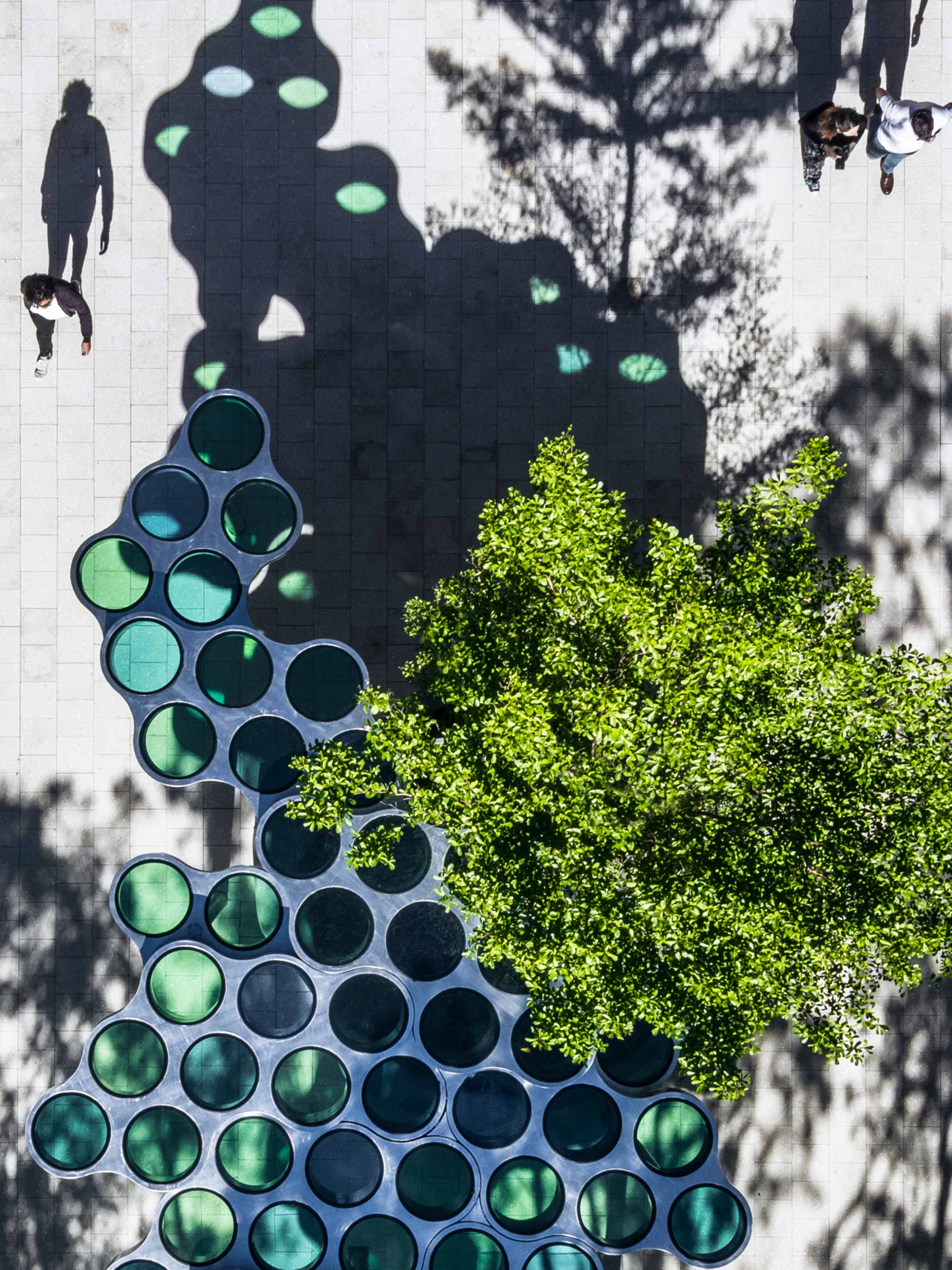 对于Nuage花瓶,设计师在不同长度的挤压铝型材中执行了云图案。基本形式的空腔现在直立放置,将花瓶分成八个单独的管,可用于巧妙地布置花和草。起伏的表面采用各种颜色的阳极氧化处理,营造出明亮的光影效果。由于其精确的外部轮廓,花瓶可以安装在一起,形成完整的“云层”。