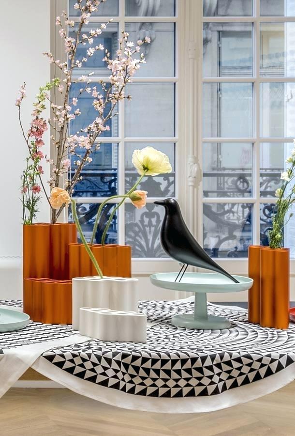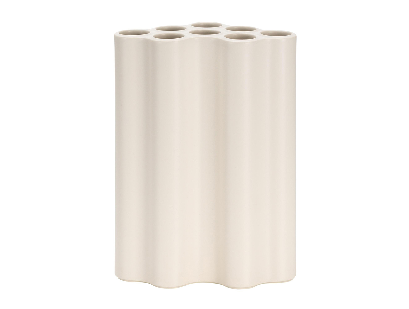 Nuage花瓶的形状于2002年首次出现在Ronan和Erwan Bouroullec的作品中。让人联想到云,这个图案最初是作为塑料货架模块生产的,可以分为集群或大规模配置。八个管状空腔刺穿模块化元件的平坦表面,同时还限定了模板的外部轮廓。多年来,Bouroullec兄弟已经改变了这种形状,并反复将其纳入他们的图形作品中。