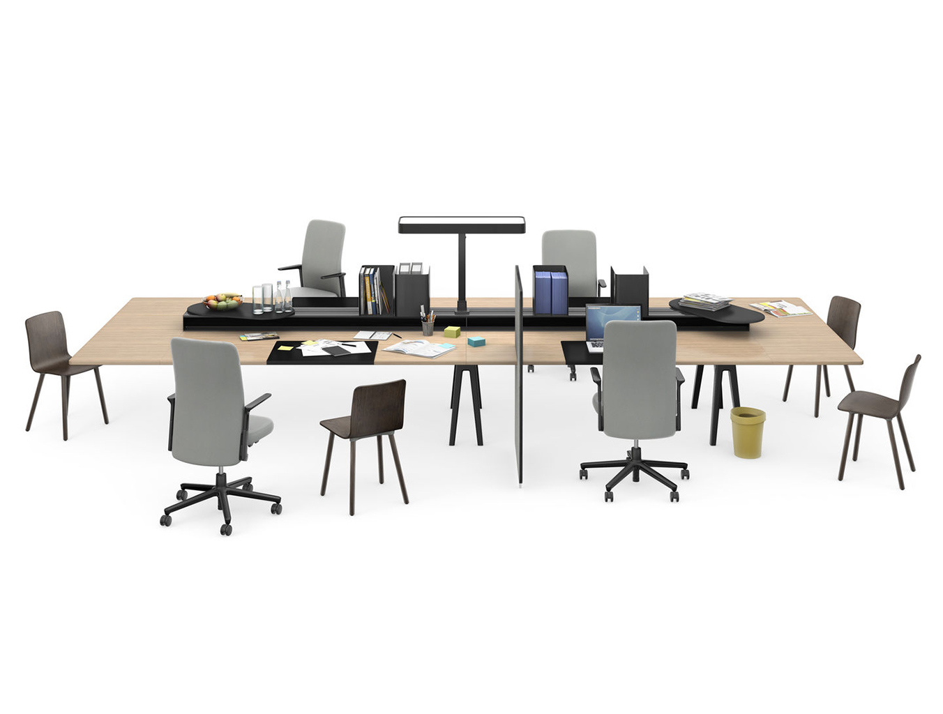 办公家具系统Joyn通过在一个层面上有效地结合多种空间功能来响应当前工作场所文化的趋势:平台。 Joyn平台的模块化结构可自发适应不断变化的工作要求和技术。