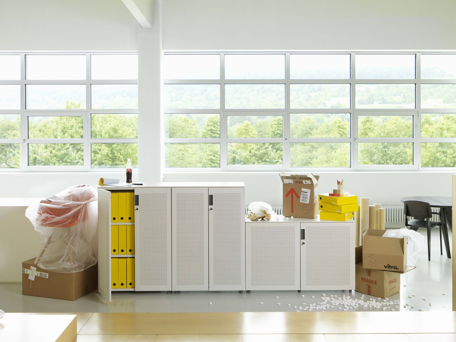 Arik Levy的储物柜系列可与所有Vitra办公家具系统配合使用。 各种宽度和高度的橱柜和侧板结合在一起,提供多种可配置的存储选项,可轻松组装,转换和拆卸。