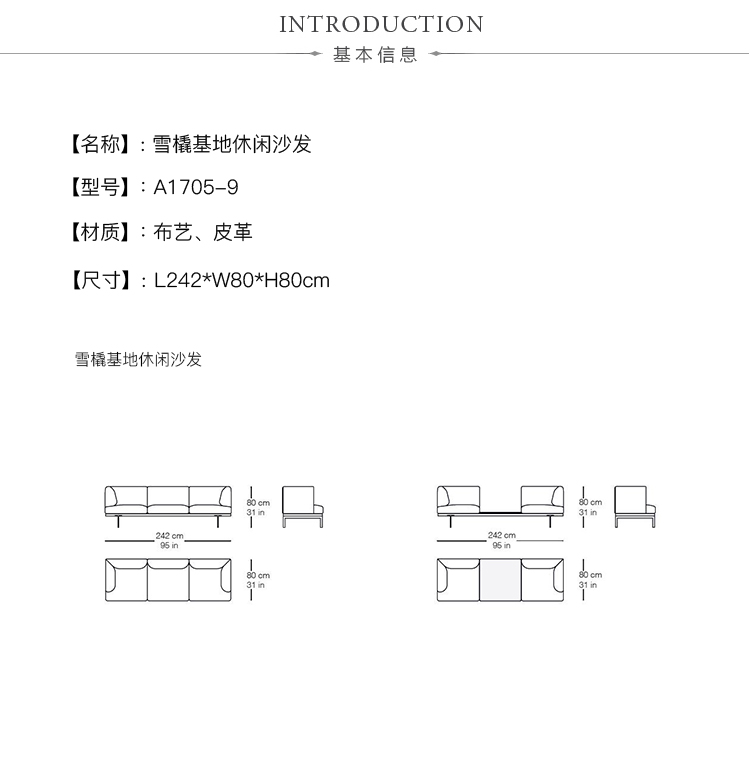 L242*W80*H80cm