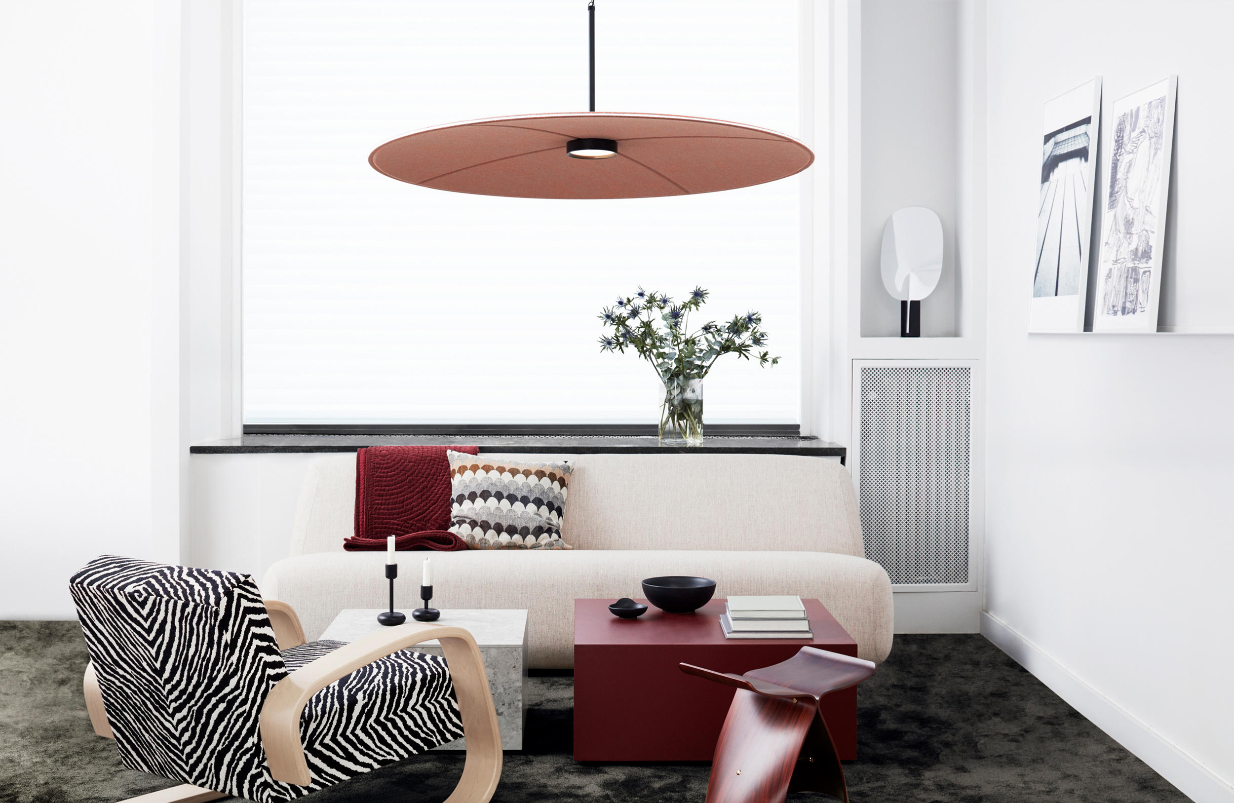 Lily吸音灯代表了声学产品的全新视角。它的减噪功能 - 制成的模制毛毡 - 已经完全集成,您甚至都不会注意到它。