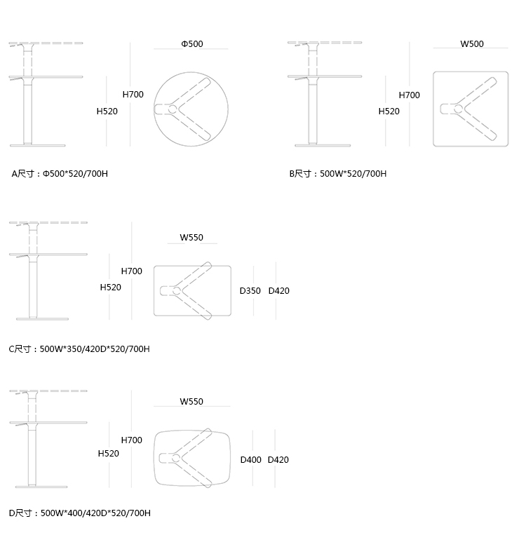 D:500W*400/420D*520/700H -