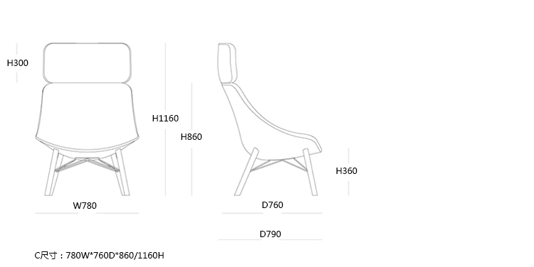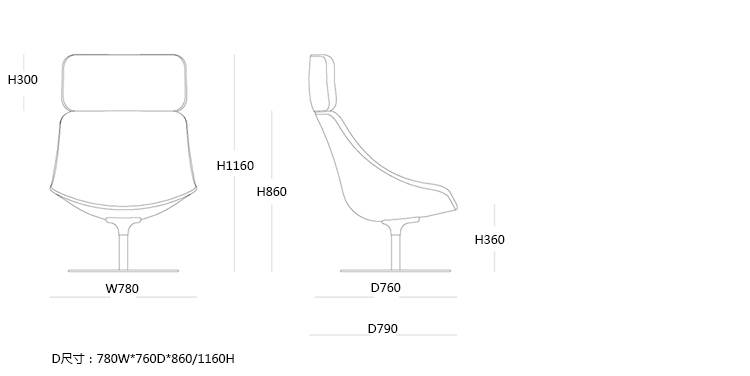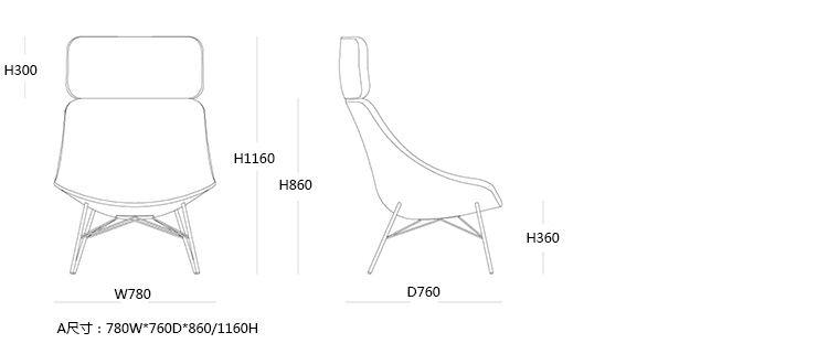 AUKI 休闲椅/洽谈椅 系列尺寸/示意图