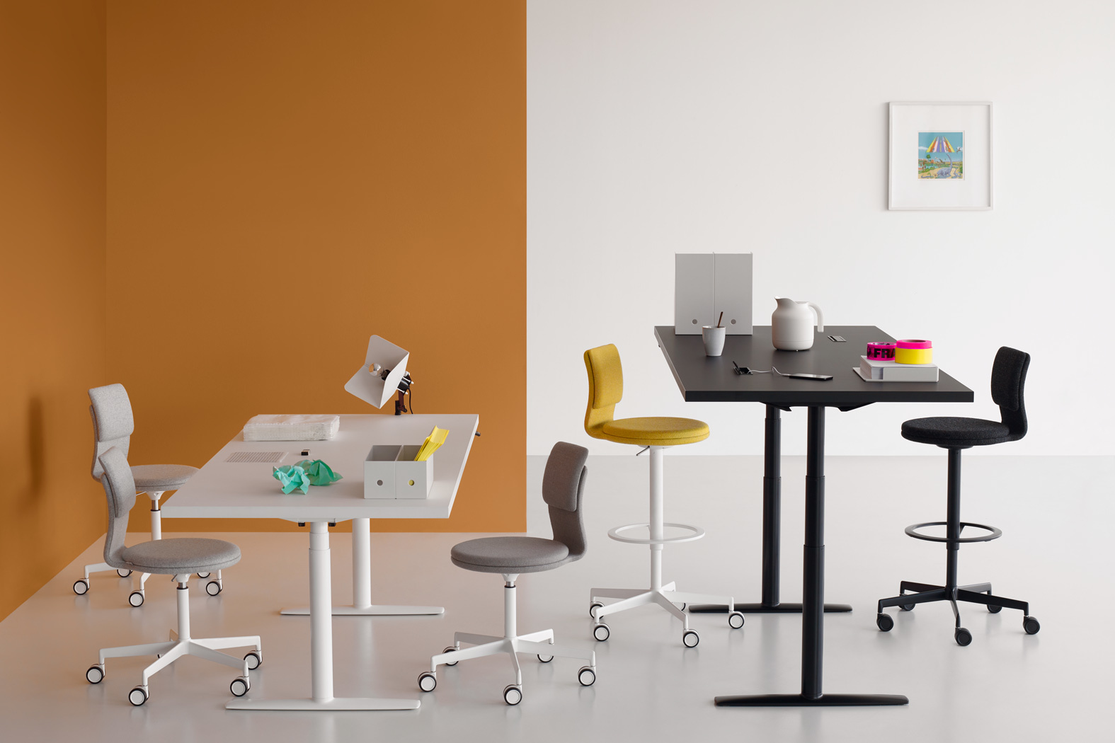 充满活力和专注,就像一个当代的工作日。随着它的靠背和高度调整,实验室凳子有“形状”,以适应任何需要在办公室。这是一个经典的工业设计,它的特点是最新的颜色和现代的轮廓。