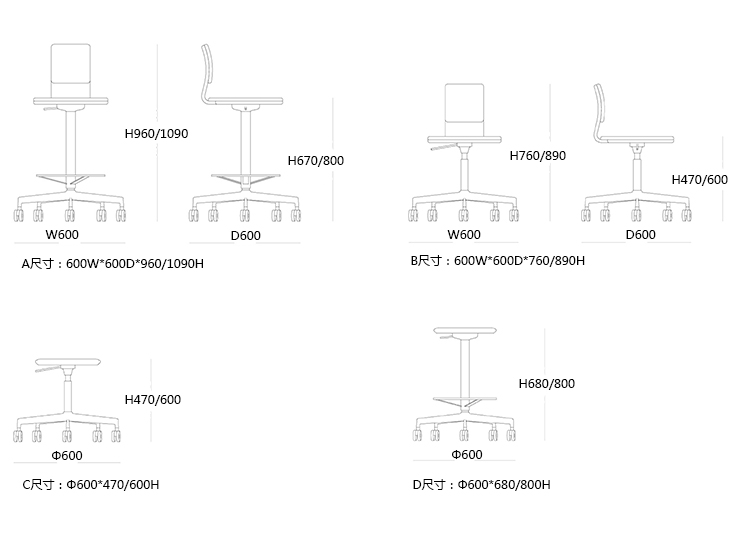 LAB 吧椅/职员椅 系列尺寸/示意图