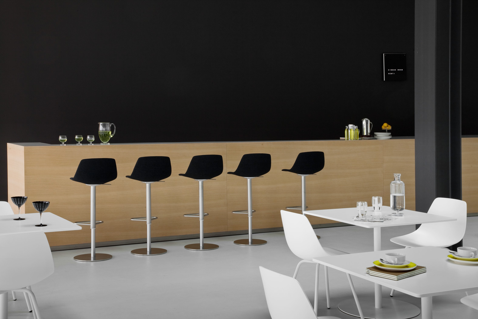 令人惊叹的木质外壳形状:MIUNN椅子和凳子-有不同的腿型和不同的高度-可轻松适应所有类型的顶部和桌子。形状支撑并伴随着靠背,而柔软的拥抱座椅线。