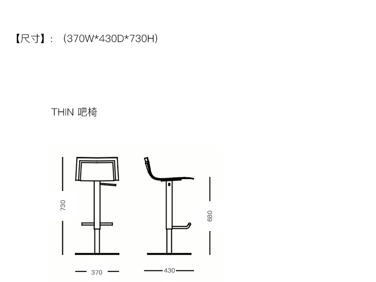 THIN 吧椅 系列尺寸/示意图